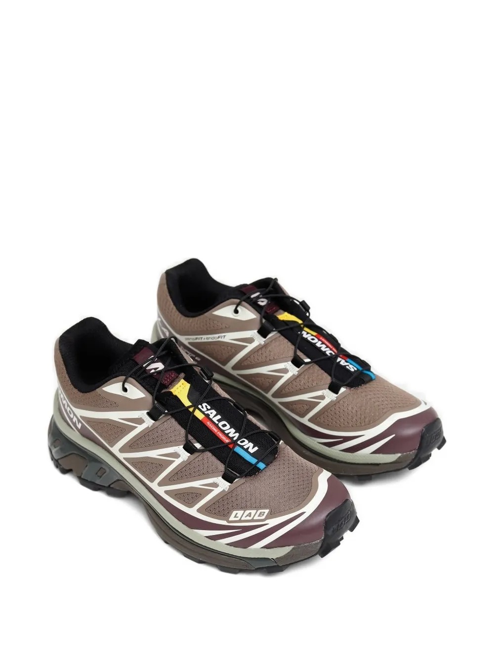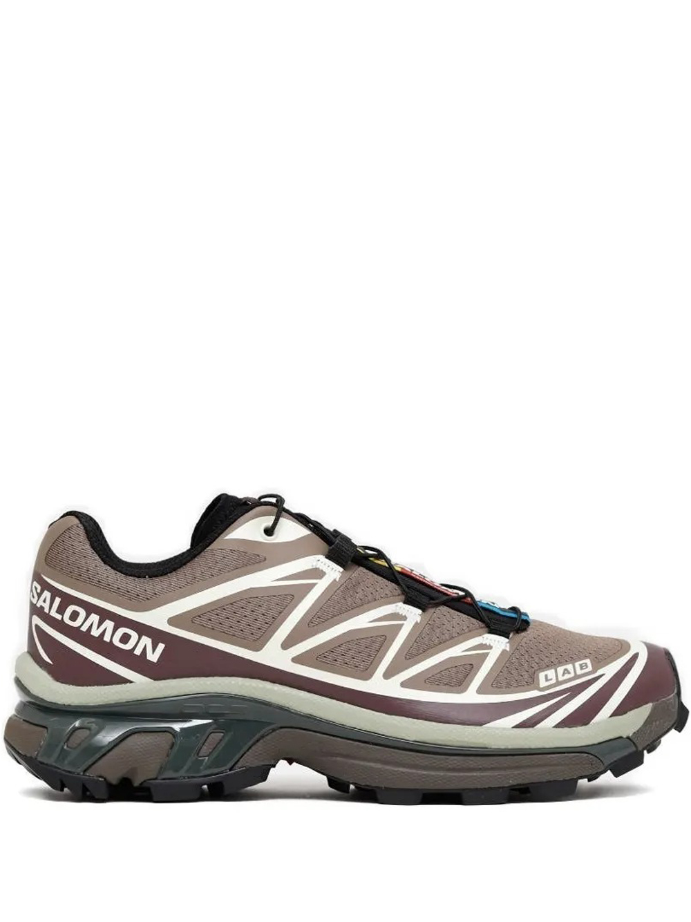 Salomon XT-6 walnut sneakers in fabric with heat-sealed details, drawstring closure, round toe, fabric lining, and textured rubber sole. The design is completed by the logo label on the tongue and the logo printed on the side.