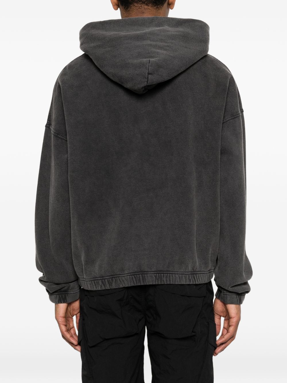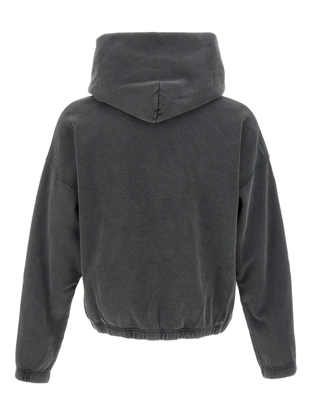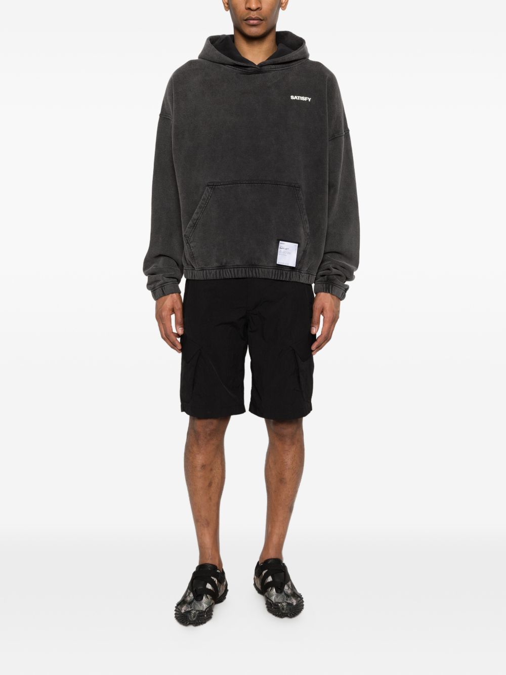 Black Satisfy hooded sweatshirt made of organic cotton, featuring a front pocket and elasticated hem and cuffs.