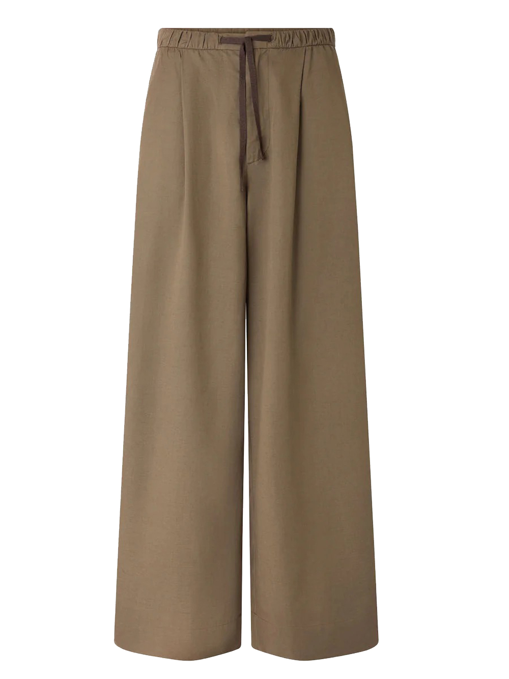Soeur Hugues tencel pants with drawstring closure, zipper, and hook, side and back pockets, and straight hem.