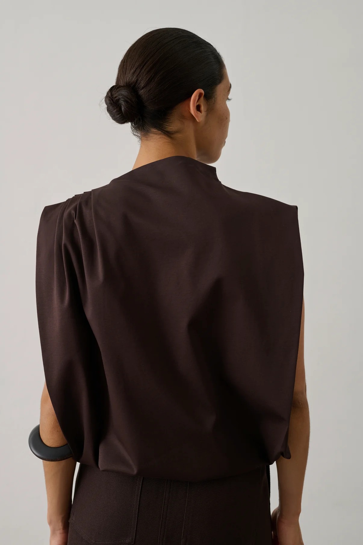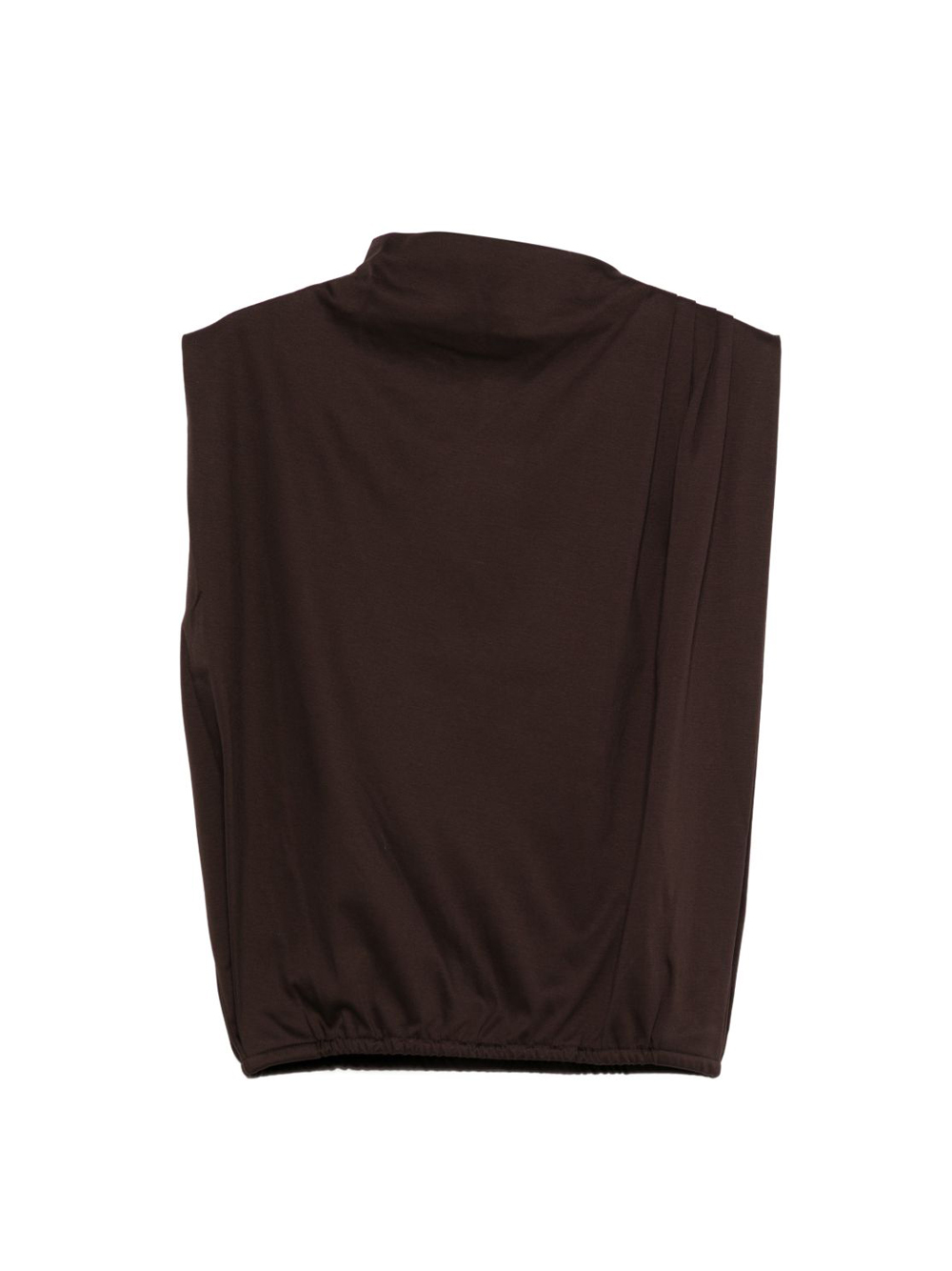 Idris brown top by Soeur in cotton with high neck, elasticated waist, sleeveless and elasticated hem.
