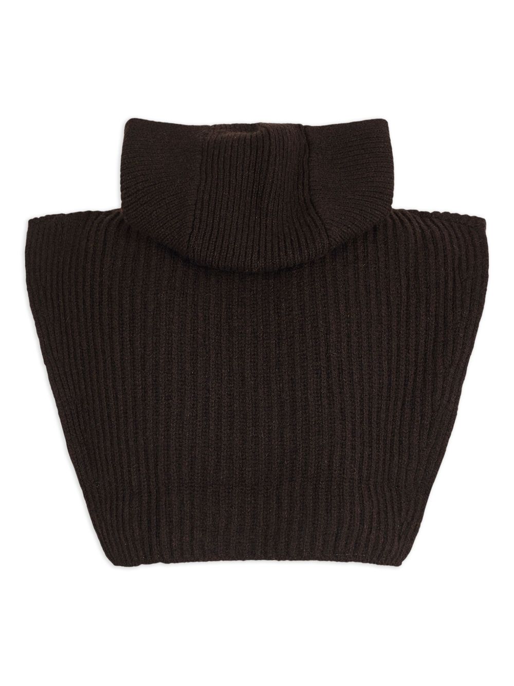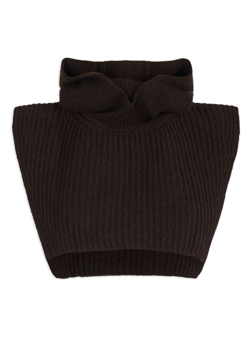 Brown wool balaclava by Soeur with ribbed texture and reinforced collar.