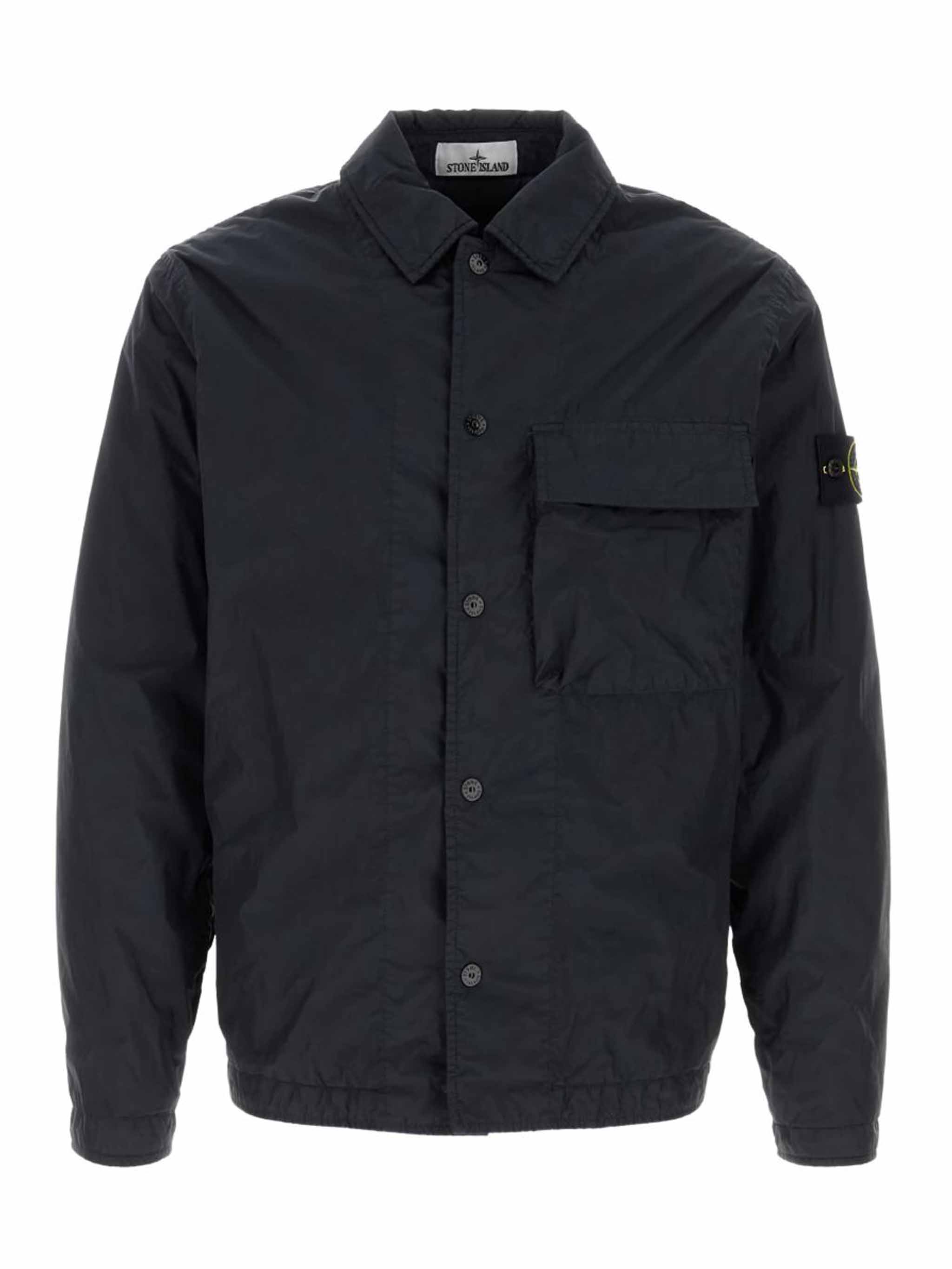 Stone Island Overshirt 1200002 in lightweight recycled nylon reps, padded with PrimaLoft®-TC, featuring a chest pocket, adjustable cuffs, and snap button closure.