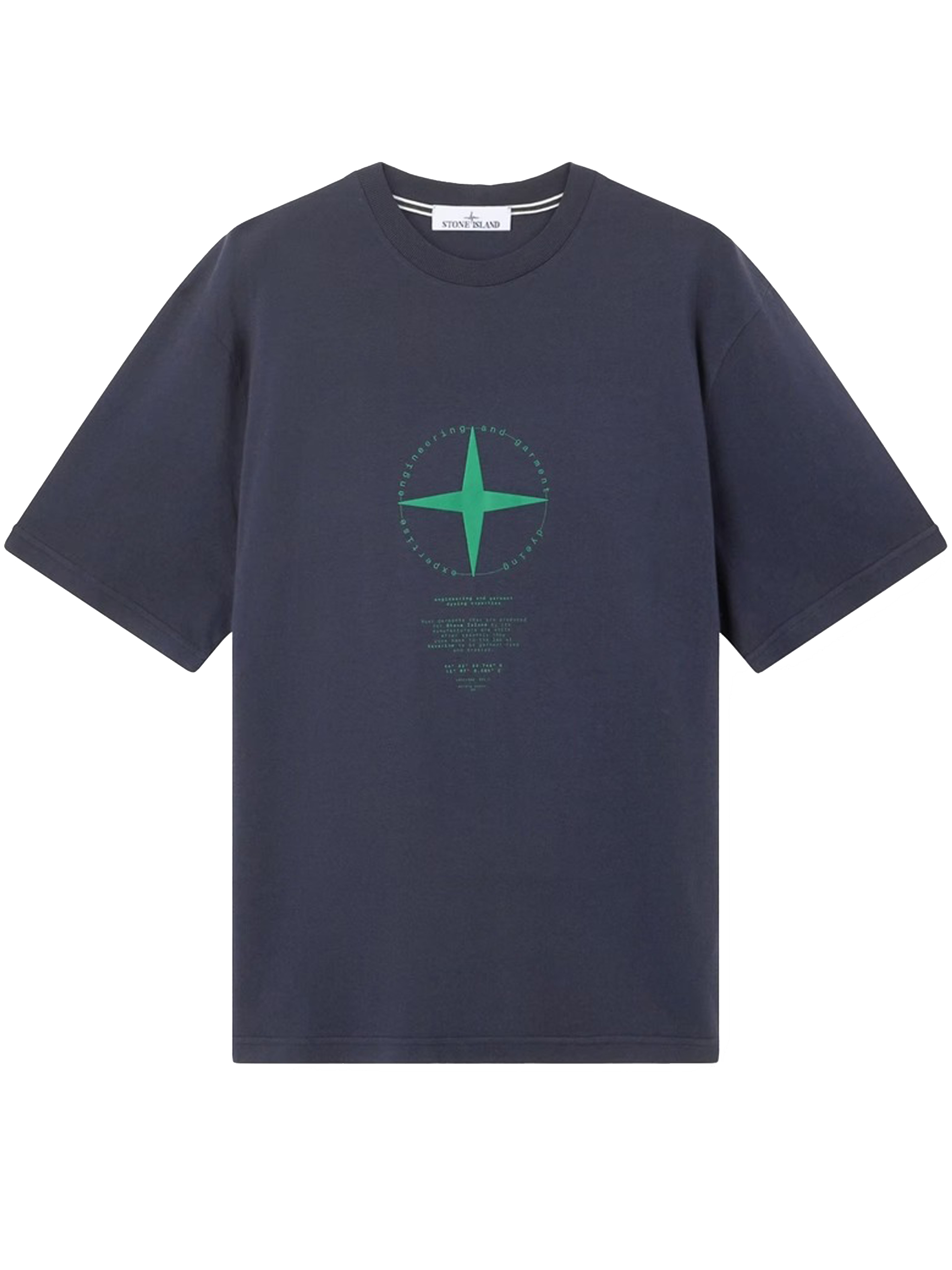 Stone Island navy cotton T-shirt with crew neck, front print, short sleeves, and straight hem.