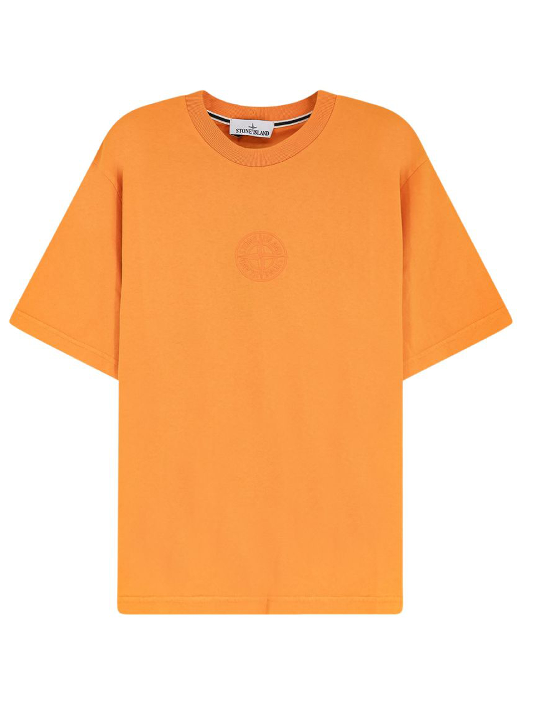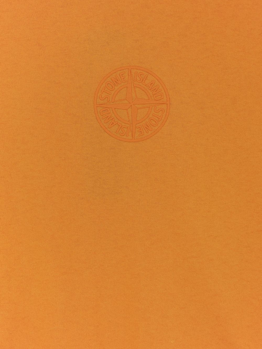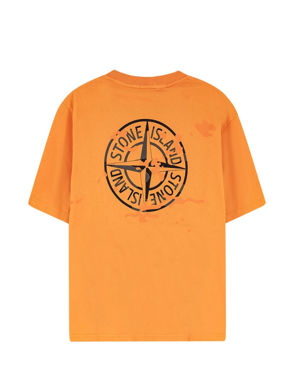 Tangerin Stone Island cotton T-shirt with a crew neck, front and back prints, short sleeves, and a straight hem.