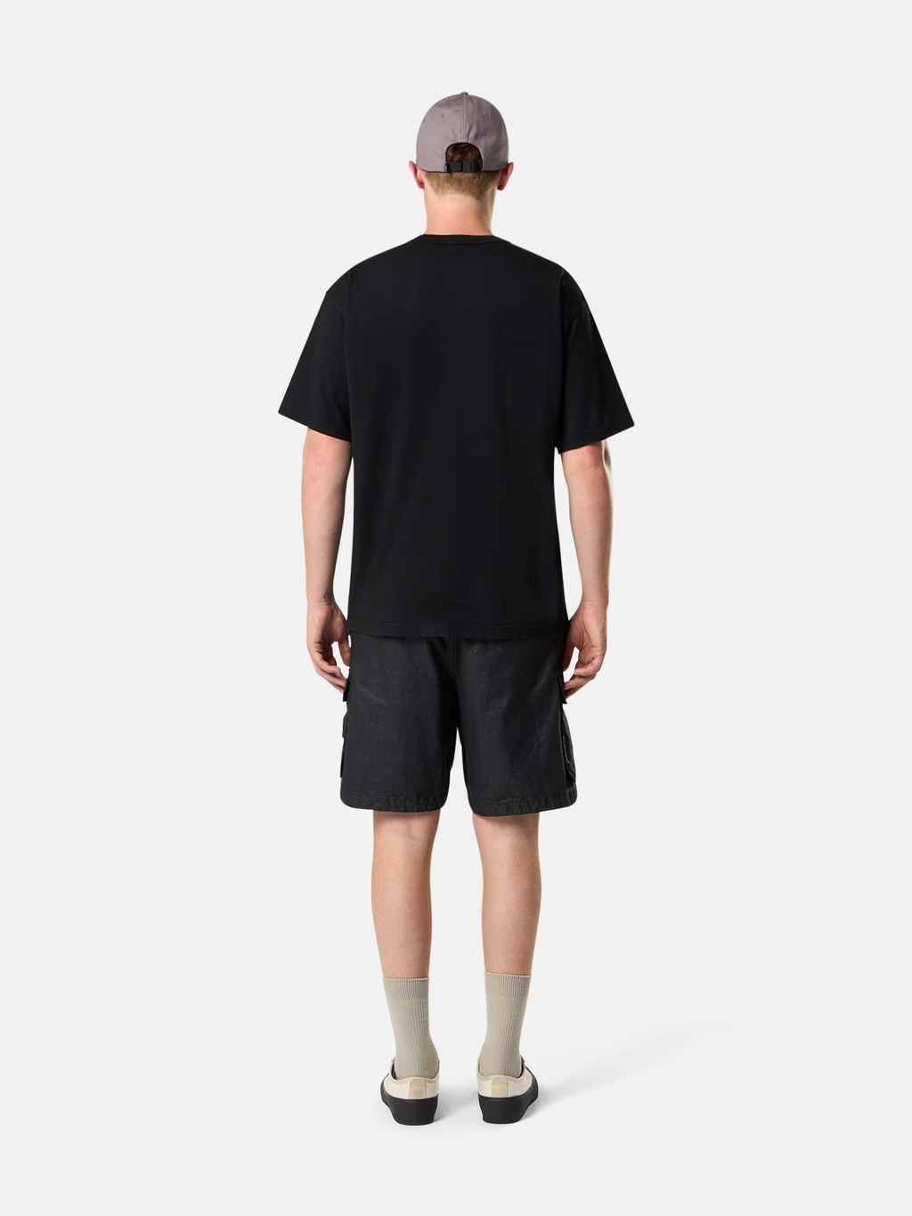 Black Stone Island cotton T-shirt with crew neck, ripstop chest pocket, logo label, short sleeves, and straight hem.