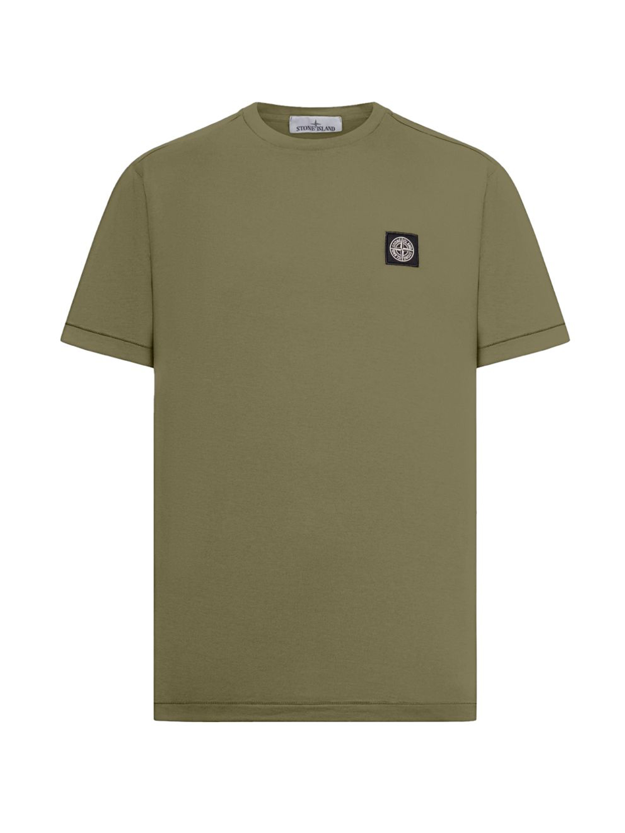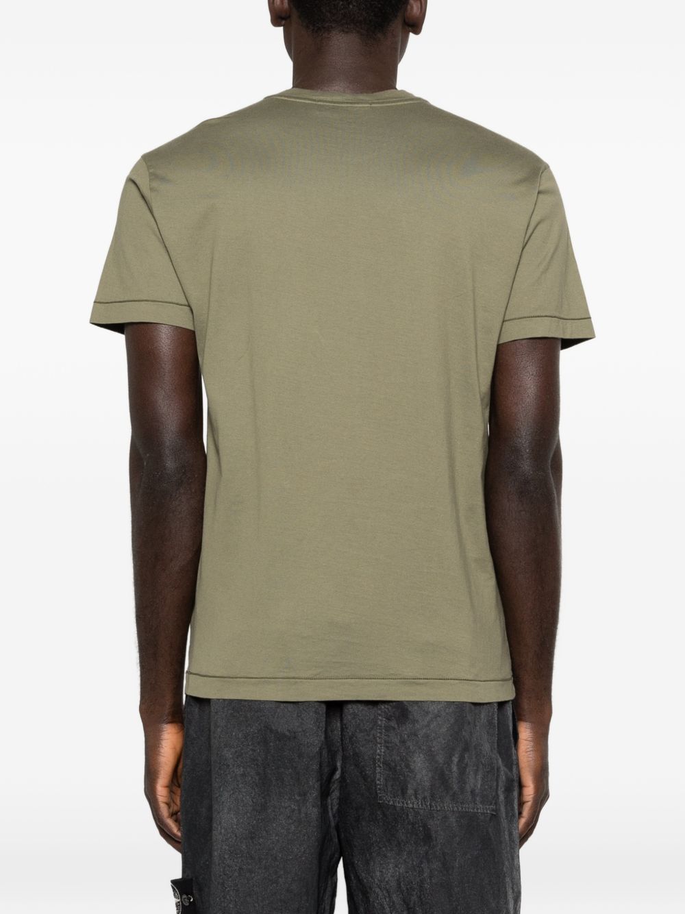Military green Stone Island cotton T-shirt with crew neck, logo label, short sleeves, and straight hem.