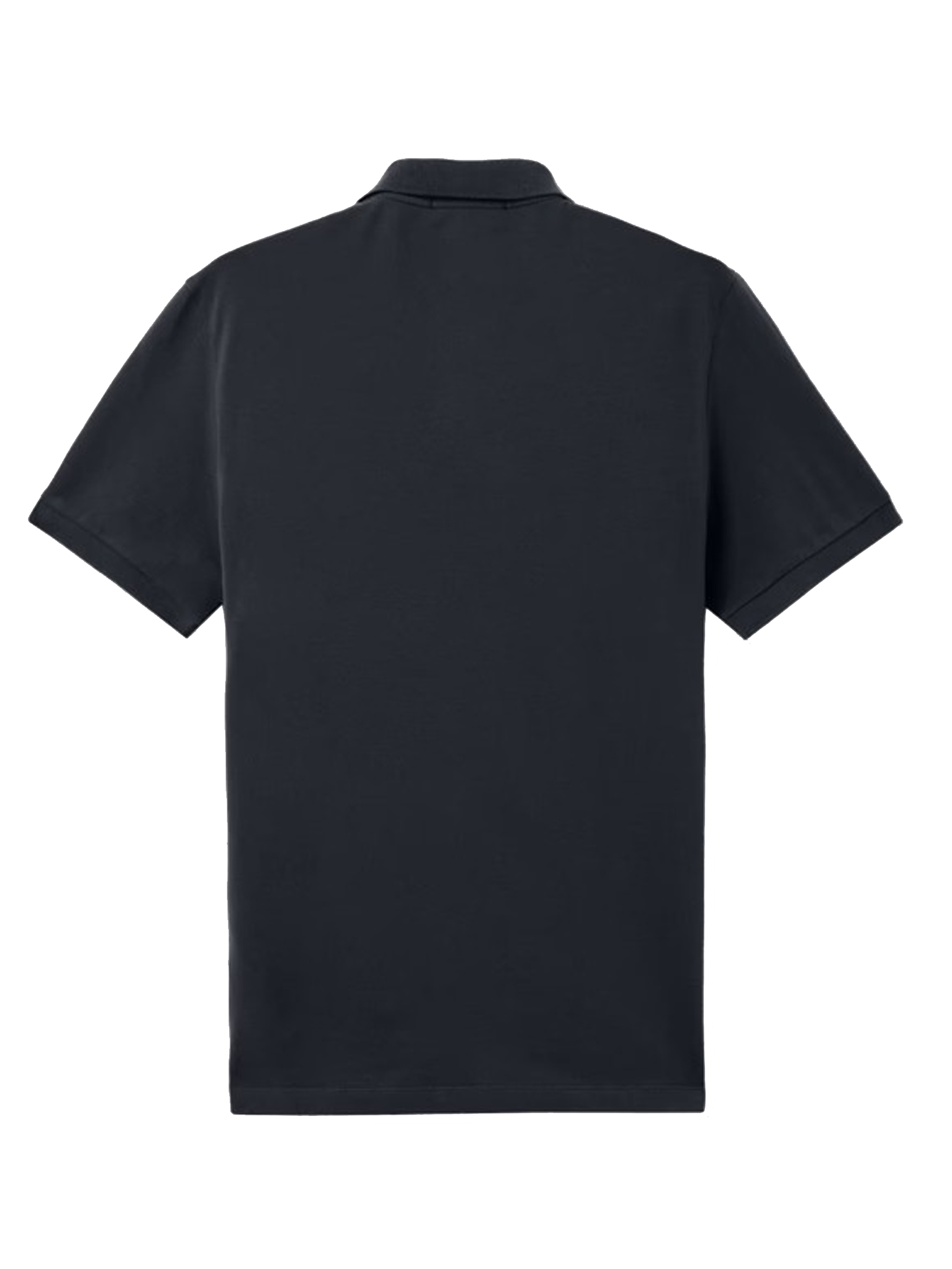 Stone Island navy cotton polo shirt with classic collar, logo label, short sleeves, and straight hem.
