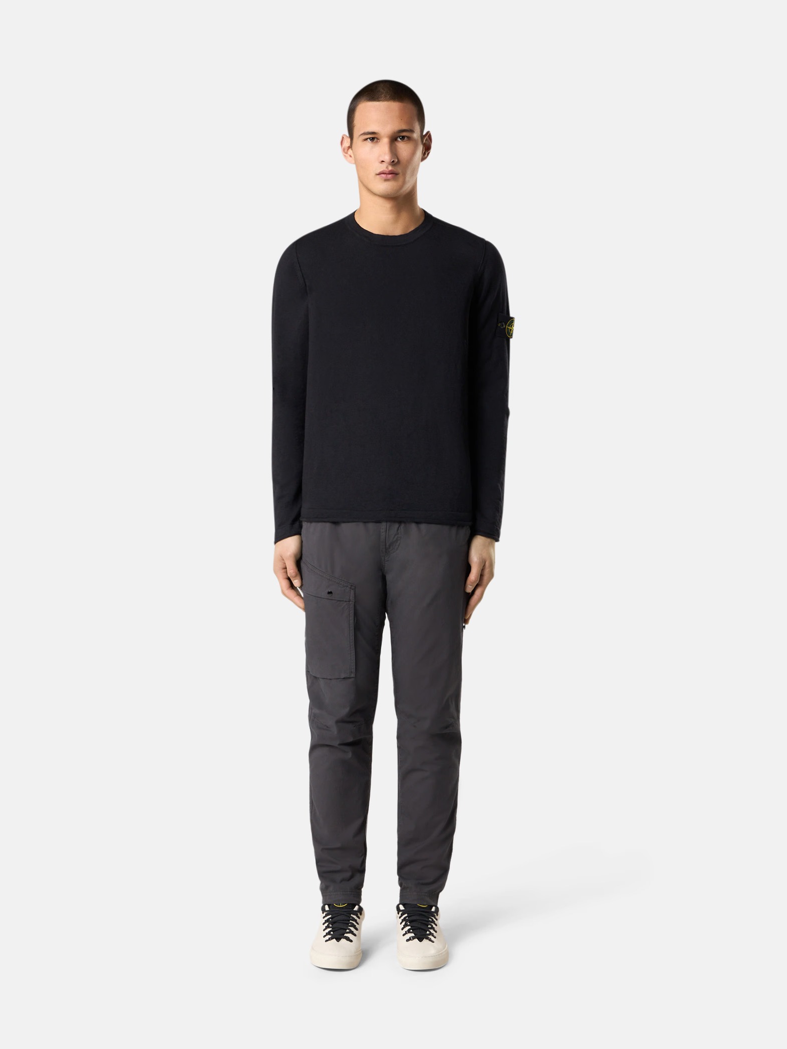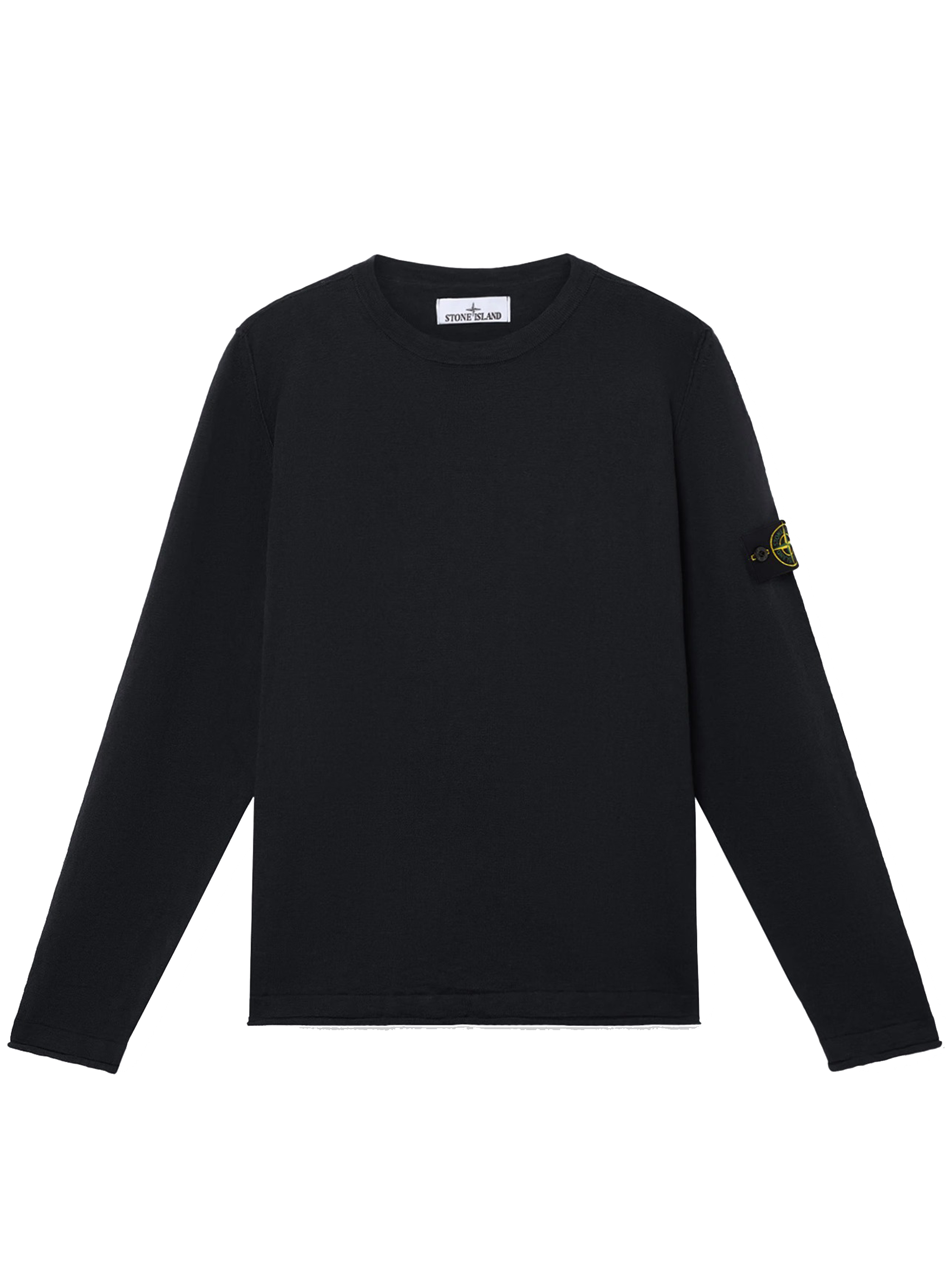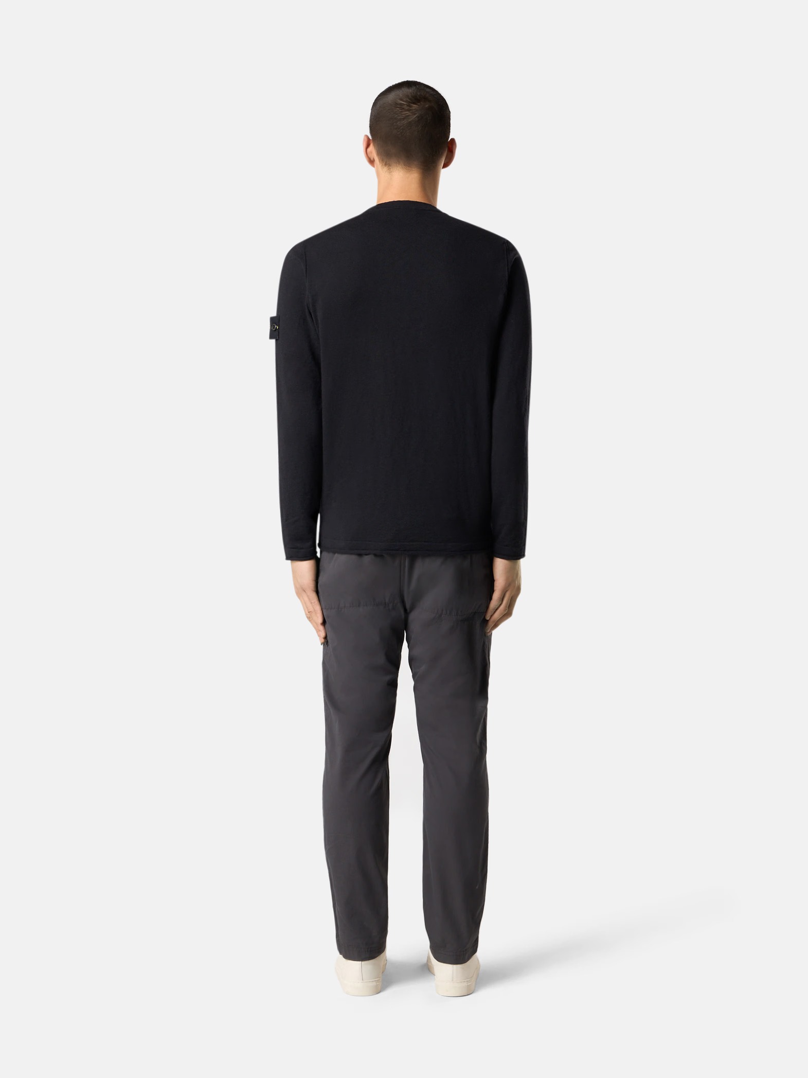 Stone Island black cotton sweater with crew neck, long sleeves, badge, and straight hem.