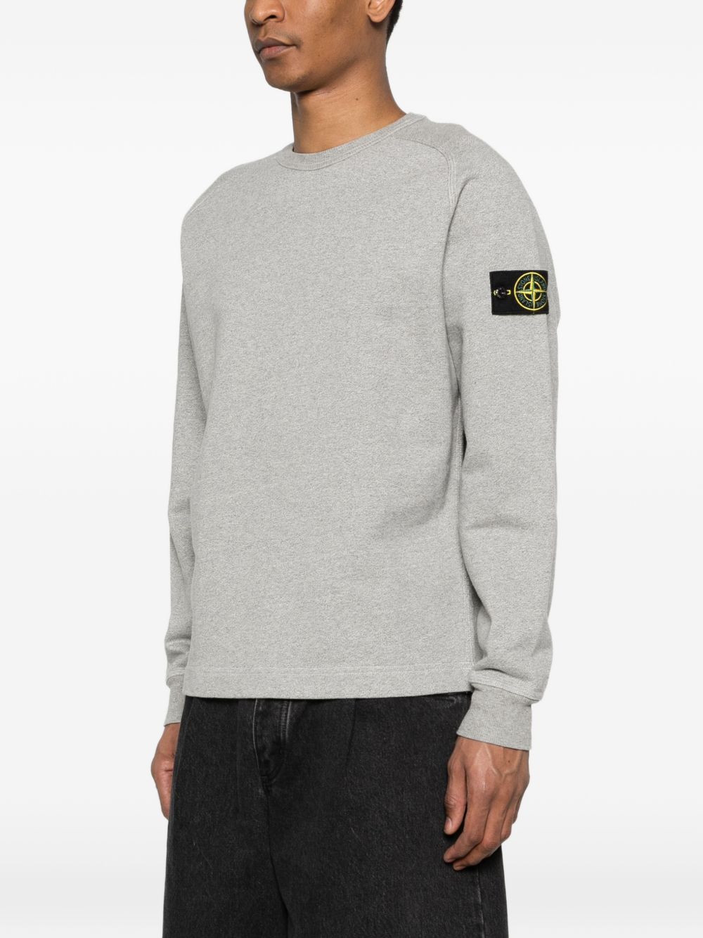 Stone Island gray cotton sweatshirt 6100022 with raglan sleeves and ribbed edges.