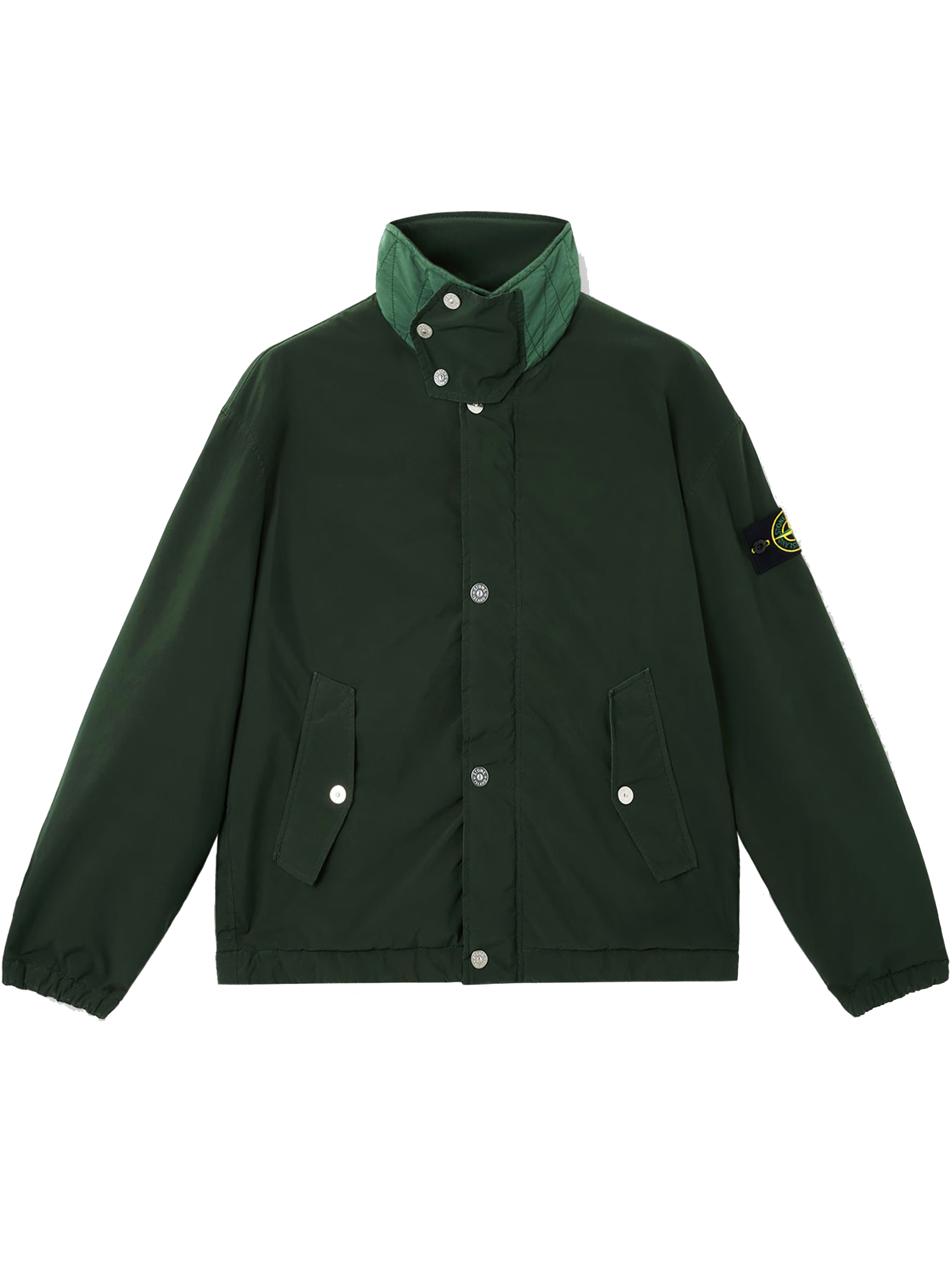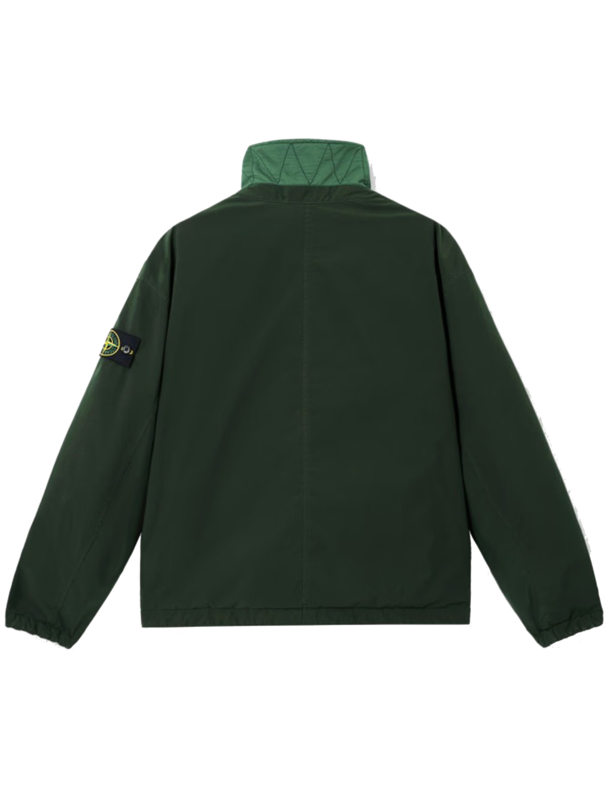 Giacca ginepro di Stone Island con pattina triangolare sul mento, bottoni automatici, chiusura con zip a doppio cursore, tasche laterali con patta e orlo dritto.