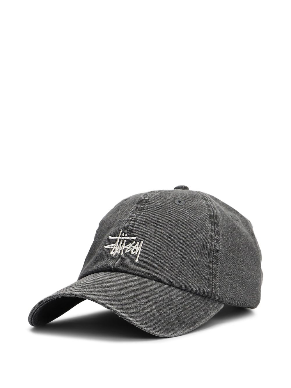 Low profile six panel cap in washed cotton twill. Stüssy basic stock logo embroidered at the crown.