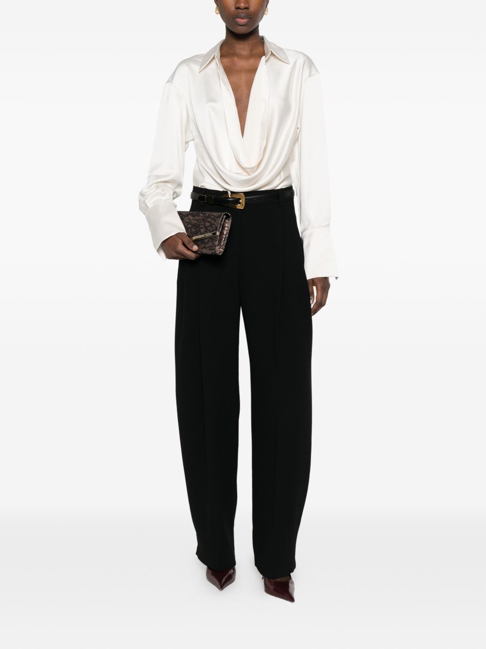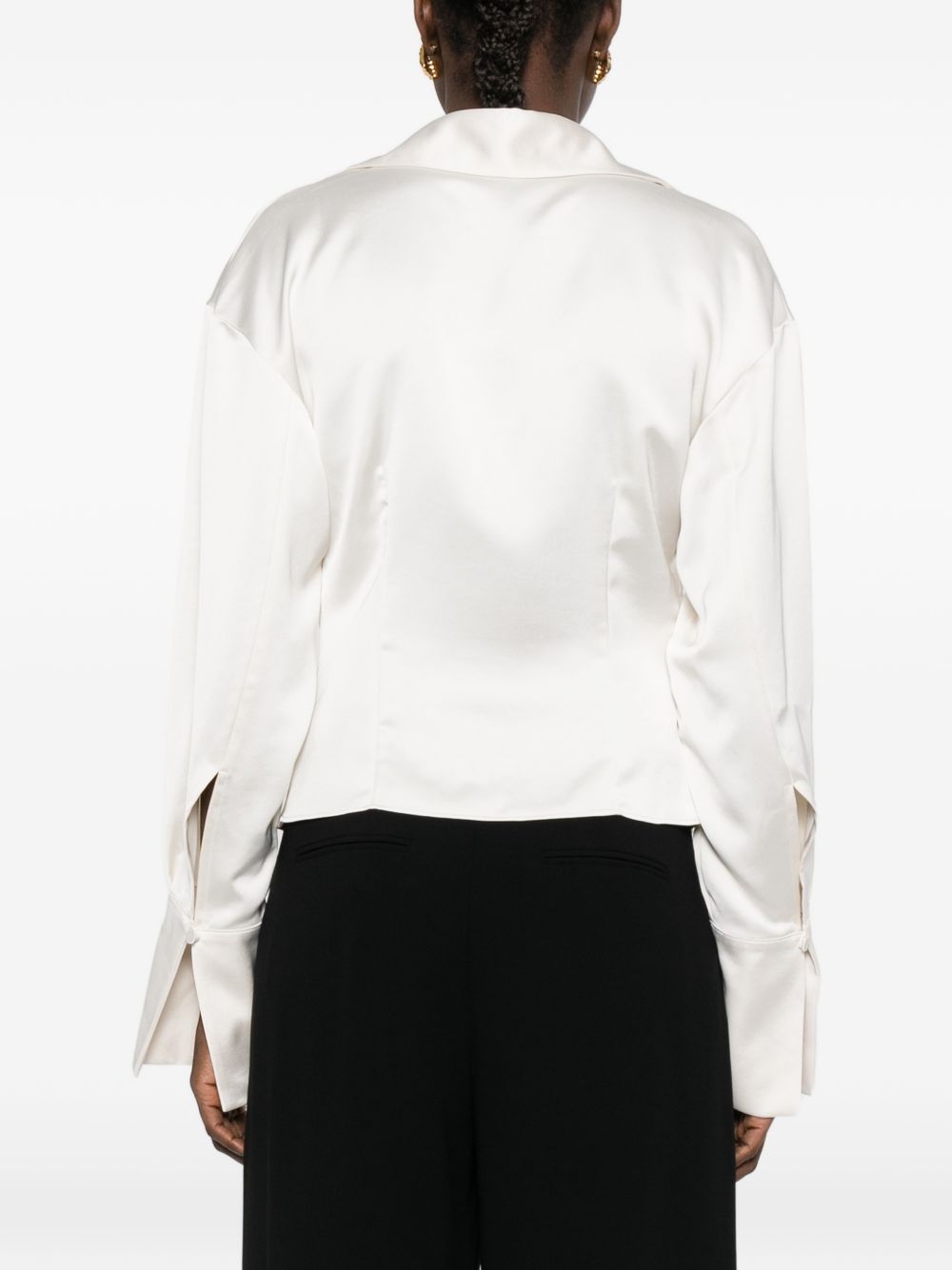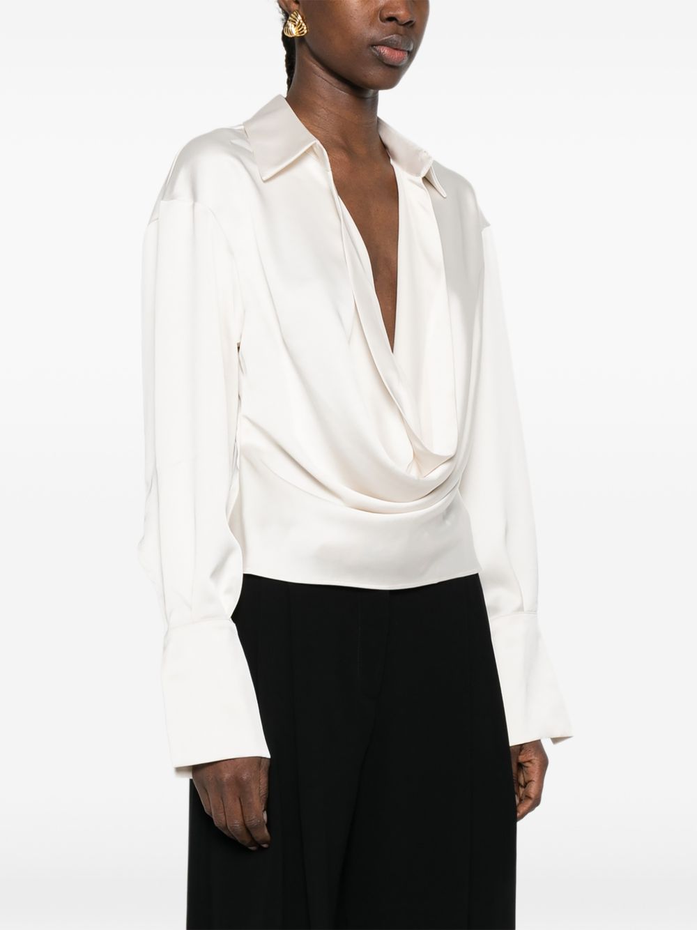 Camicia latte di The Andamane in poliestere con maniche lunghe, orli con abbottonatura e scollo drappeggiato.