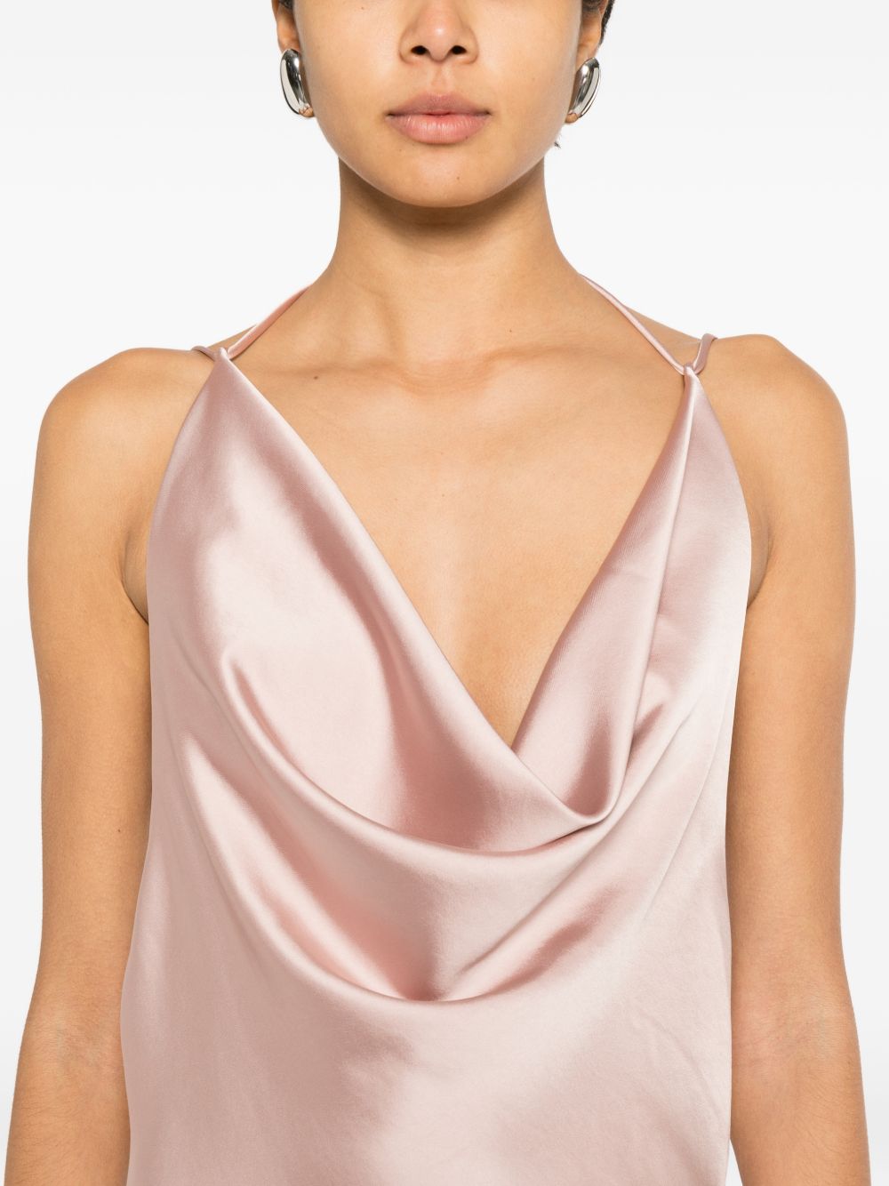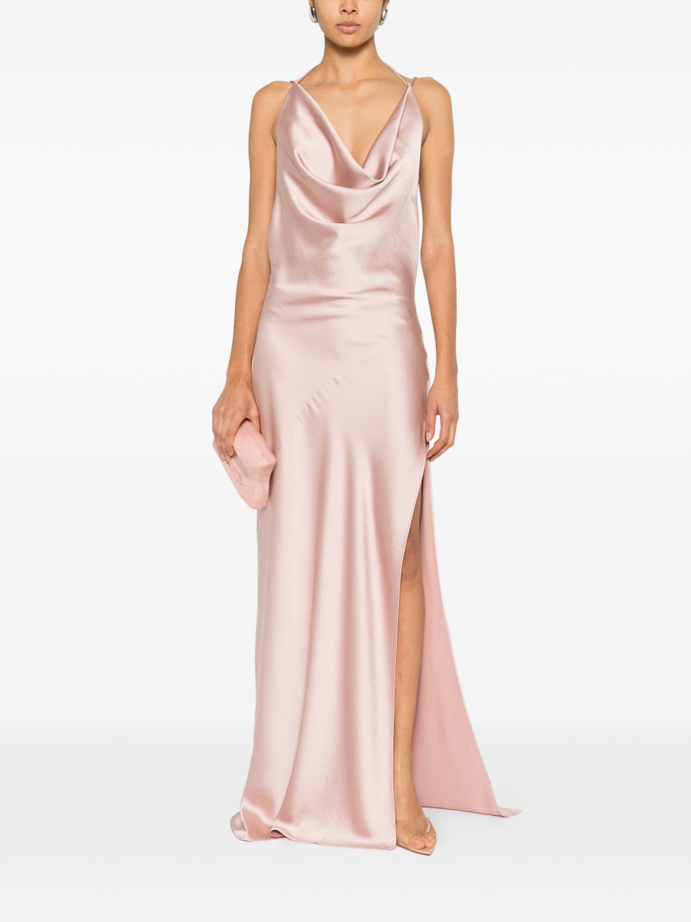 Maxi abito rosa di The Andamane in poliestere con collo borbido, schiena scoperta e spacco laterale.