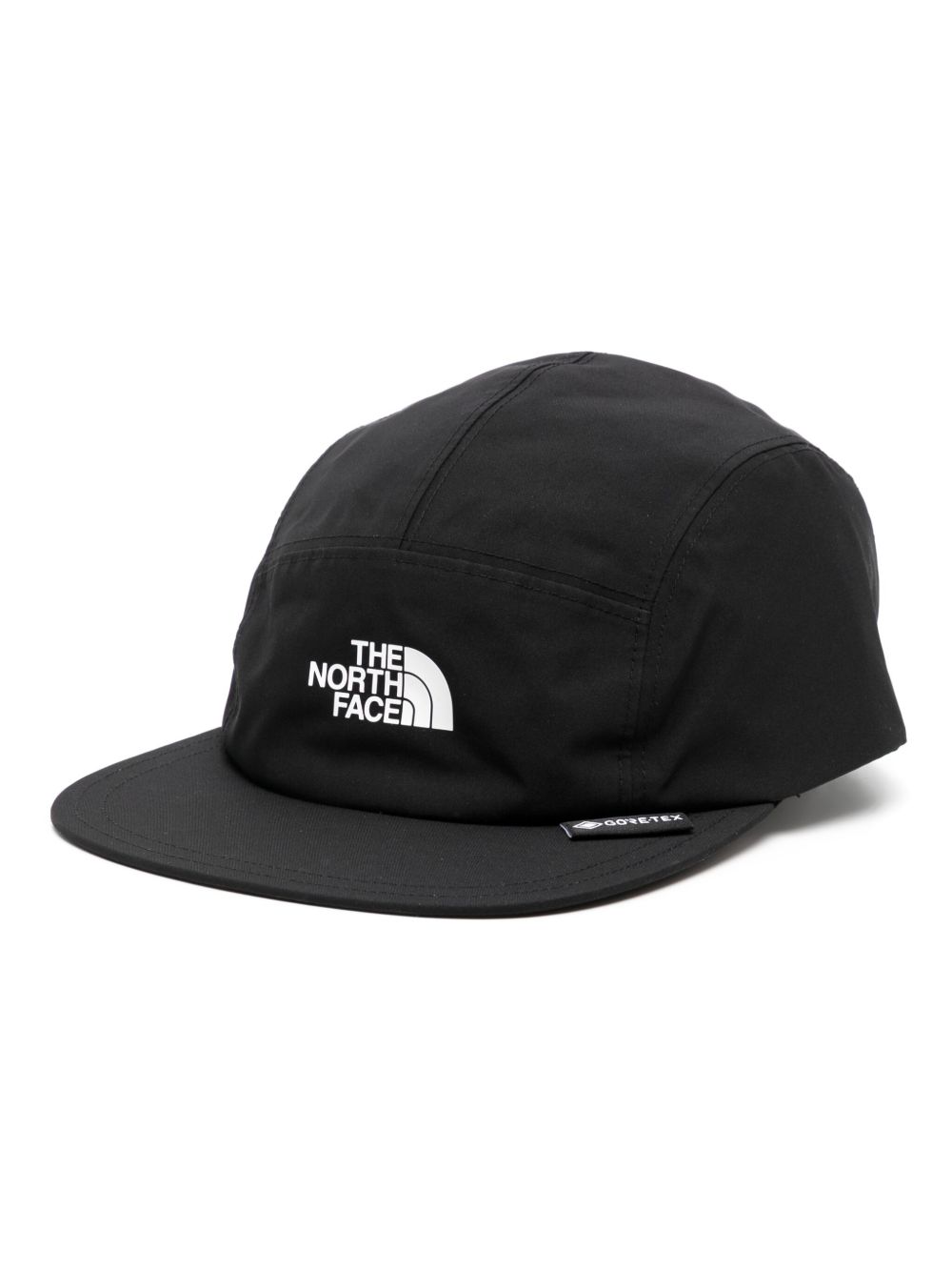 Black Ballcap GTX hat by The North Face in polyester with adjustable buckle strap at the back, logo print on the front, flat visor, mesh lining, pull-on design, and waterproof GORE-TEX® material.