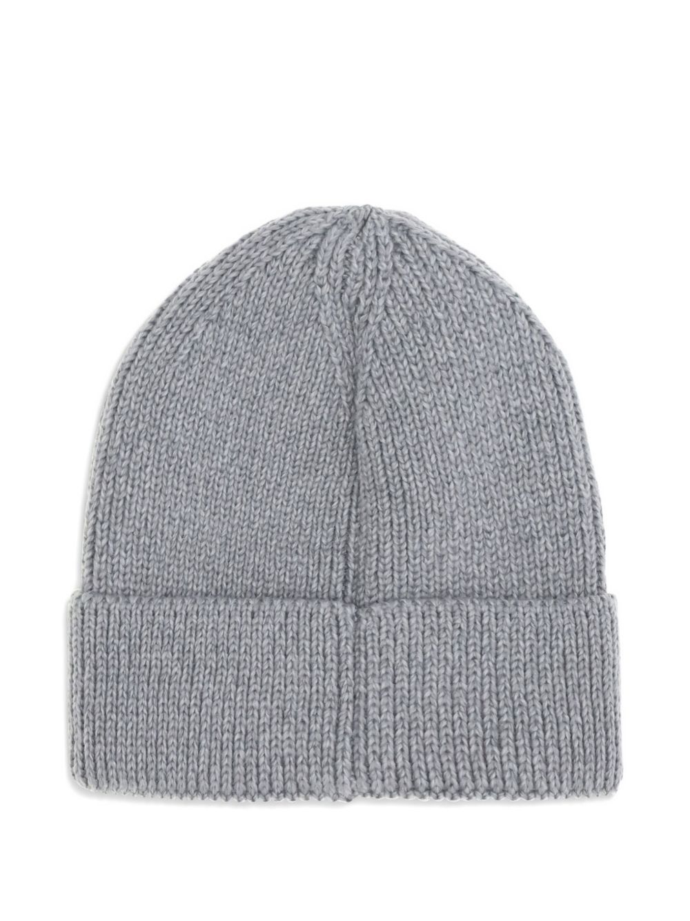 Grey beanie hat by The North Face in ribbed polyester with logo and turned-up brim.