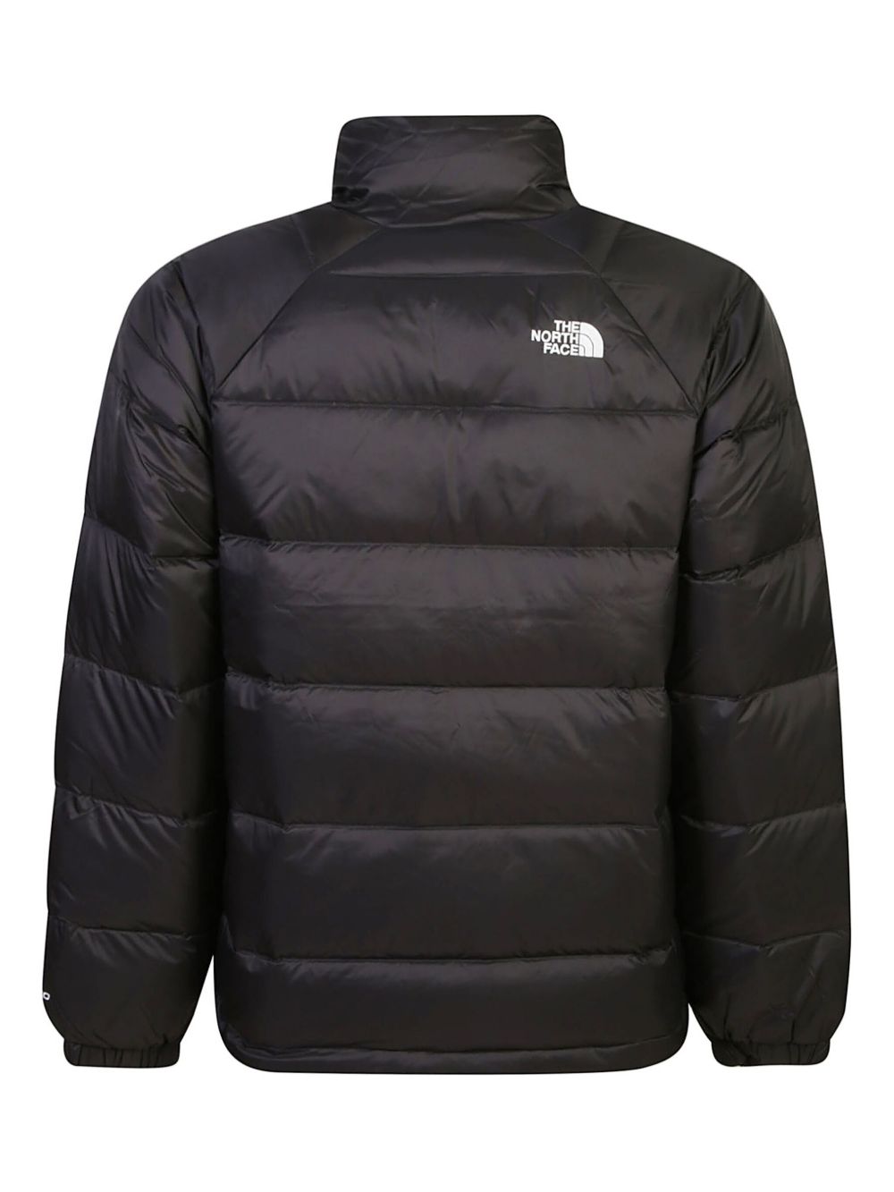 Black Hydrenalite padded jacket by The North Face in polyester with hood, front zip closure, zippered pockets, elastic cuffs, and hem.