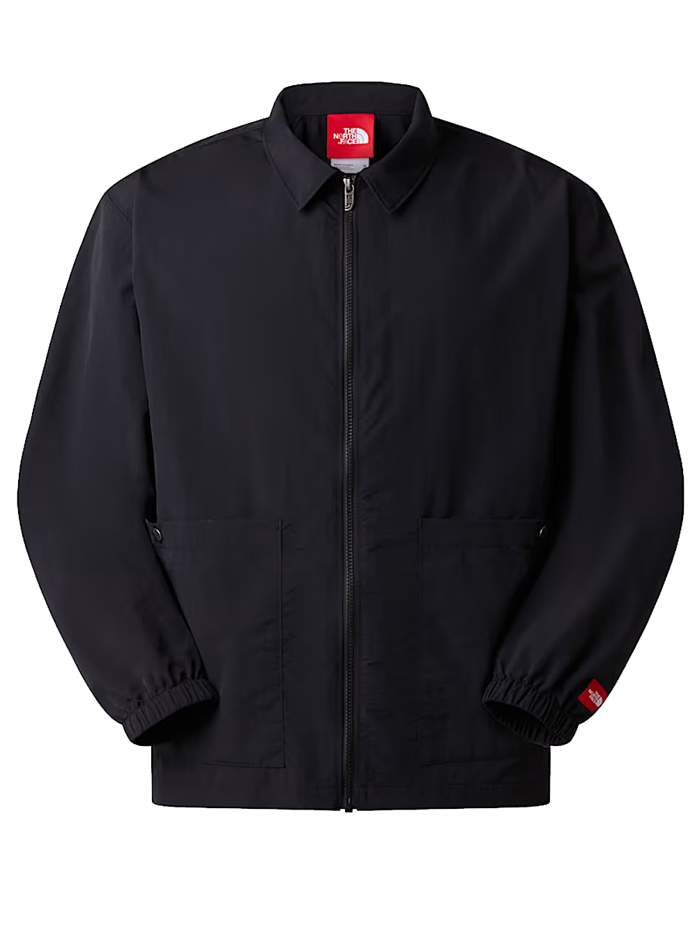 Overshirt nera Re-Box LS di The Northe face in nylon con colletto classico, chiusura frontale con zip, tasche laterali e orlo dritto.
