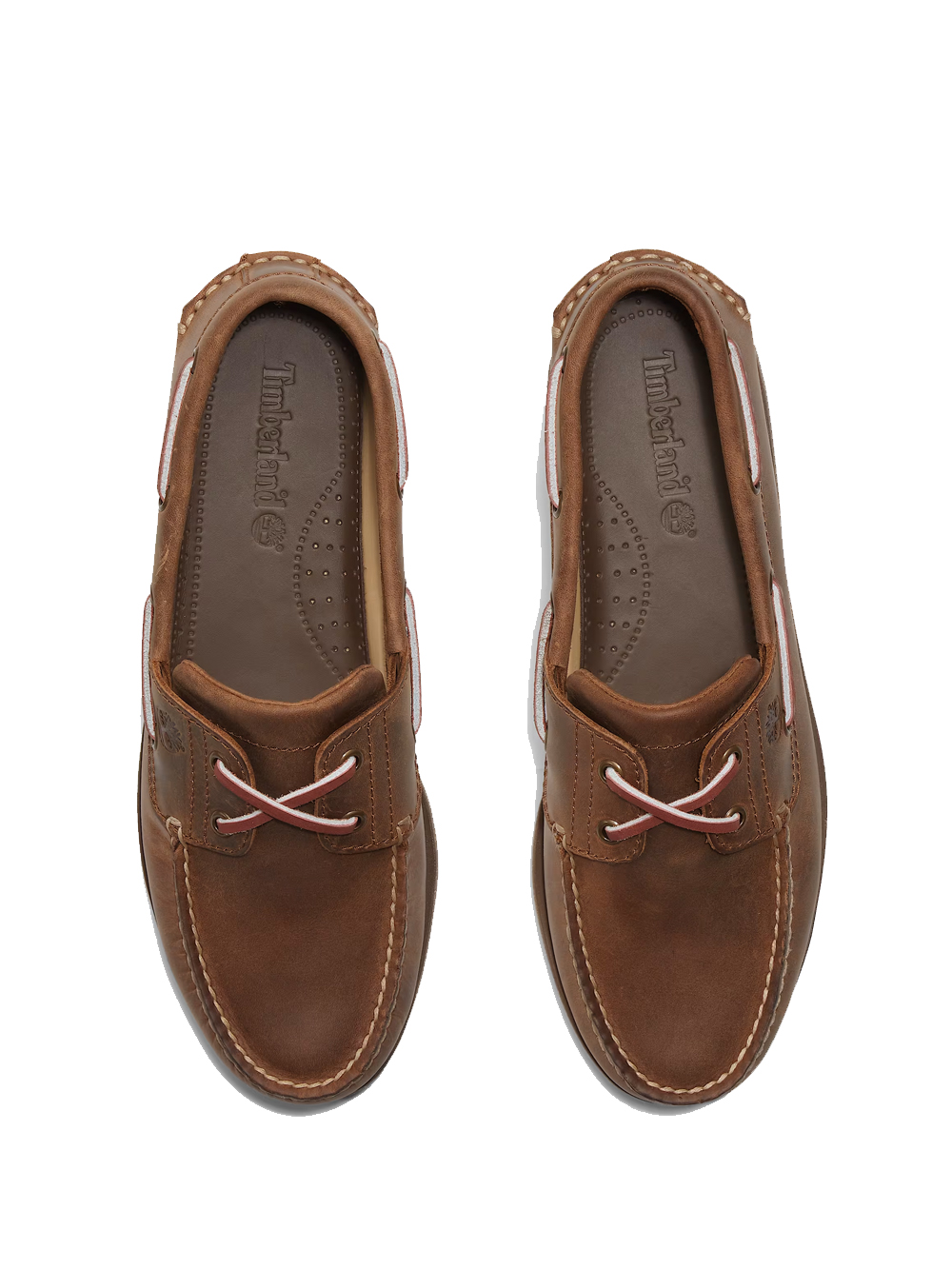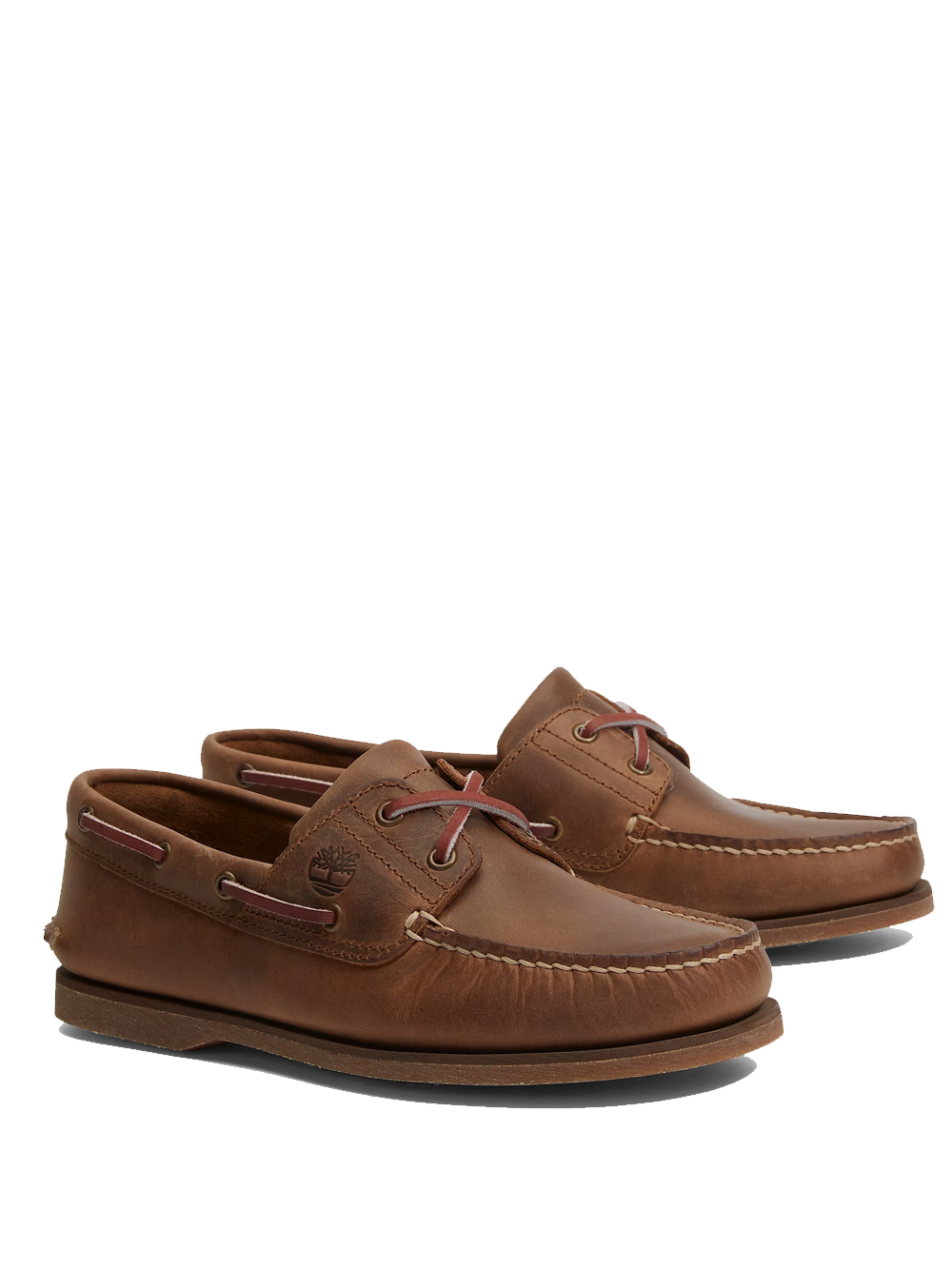 Brown lace-up Classic Boat 2 Eye shoes by Timberlad in leather with lace-up front closure and rubber sole.