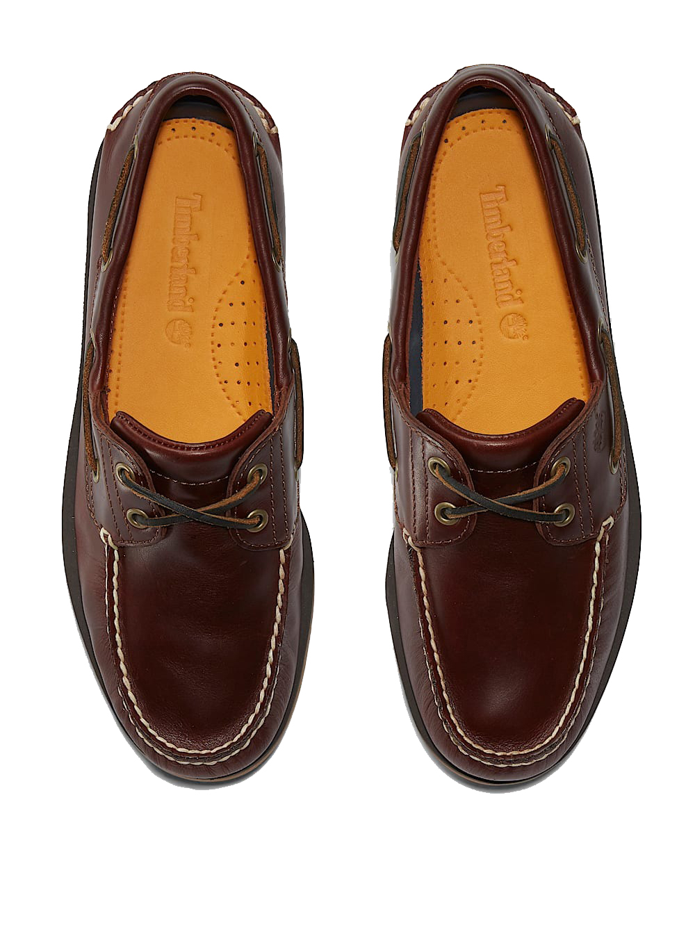 Brown lace-up Classic Boat 2 Eye shoes by Timberlad in leather with lace-up front closure and rubber sole.