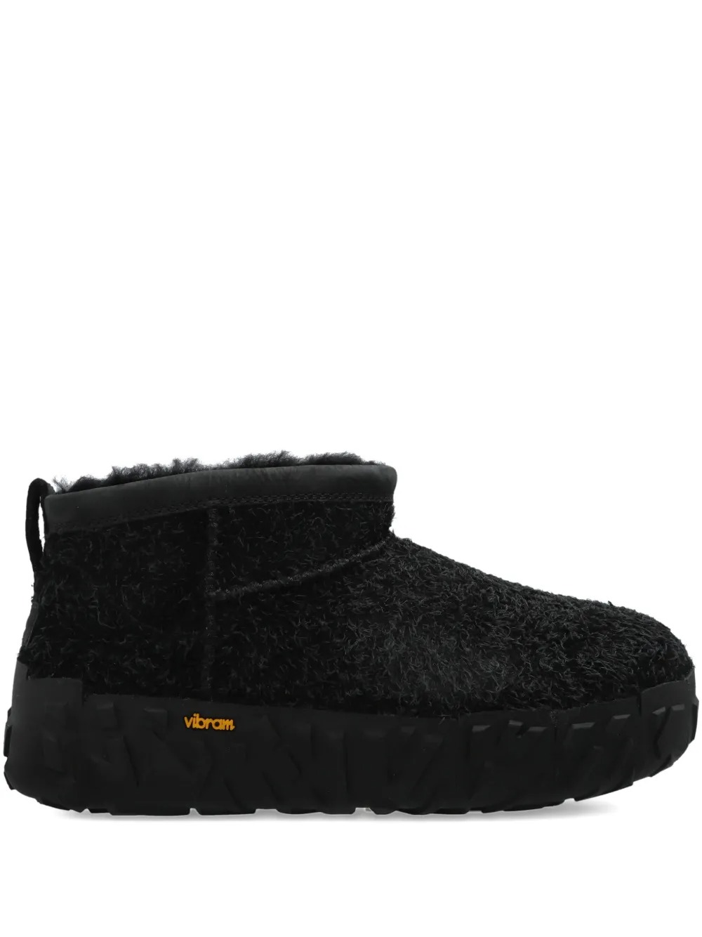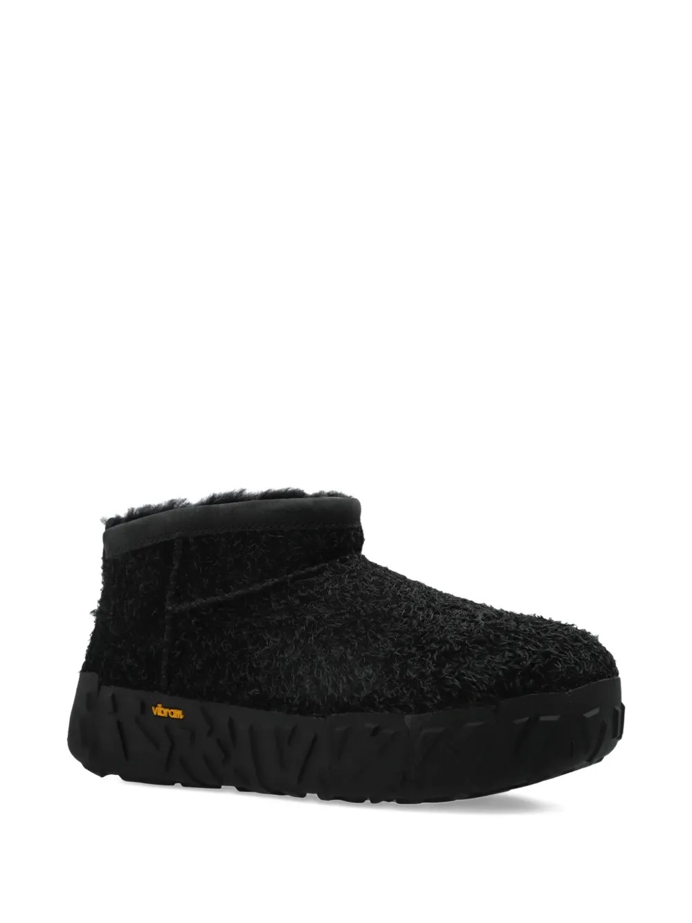 Ugg men's Classic Ultra mini Wrap Tech black ankle boots in suede leather, embossed finish, tongue and rubber sole.