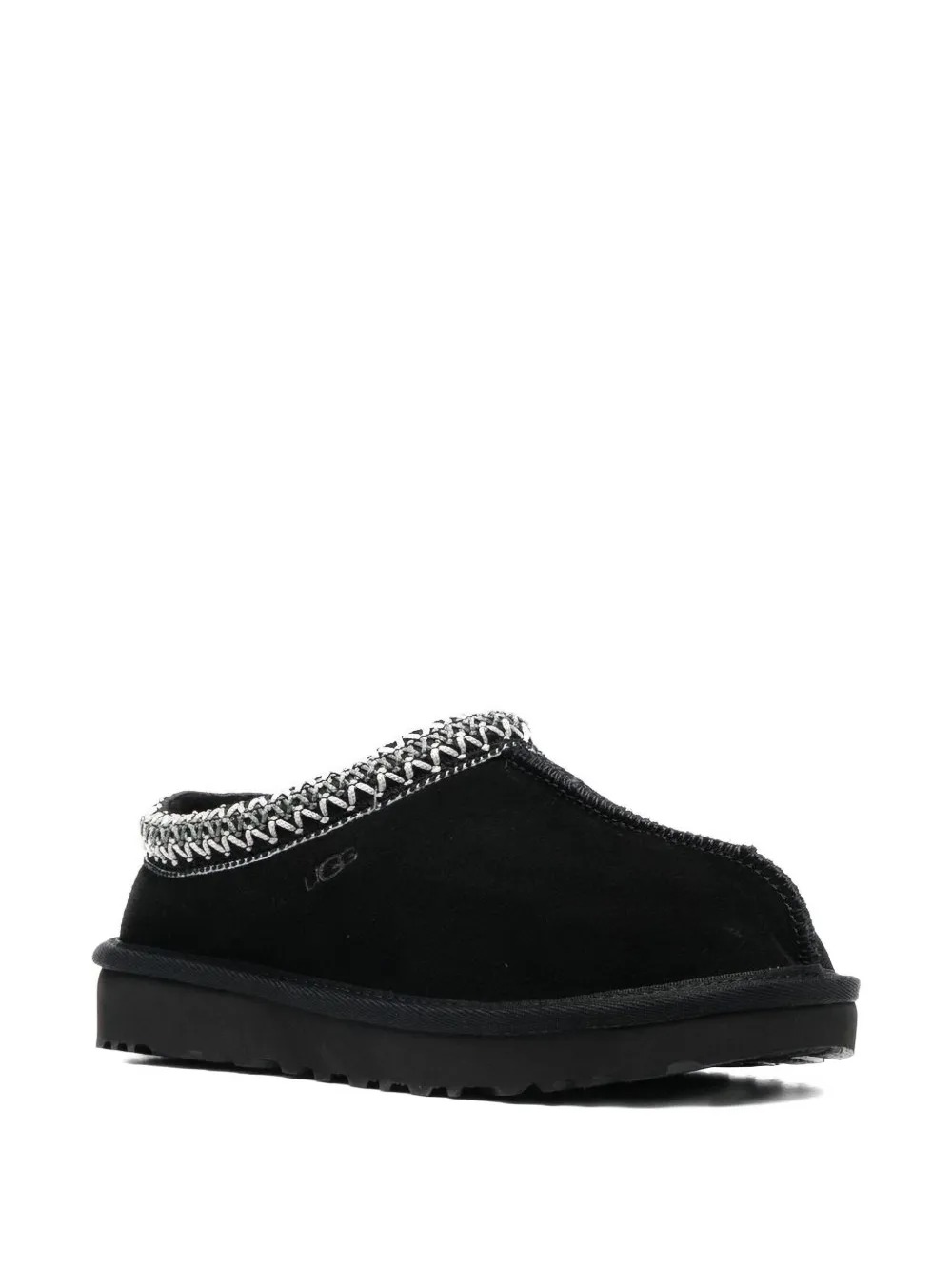 Tasman II black men's mules by Ugg in suede with round toe, wool insole, and flat rubber sole.