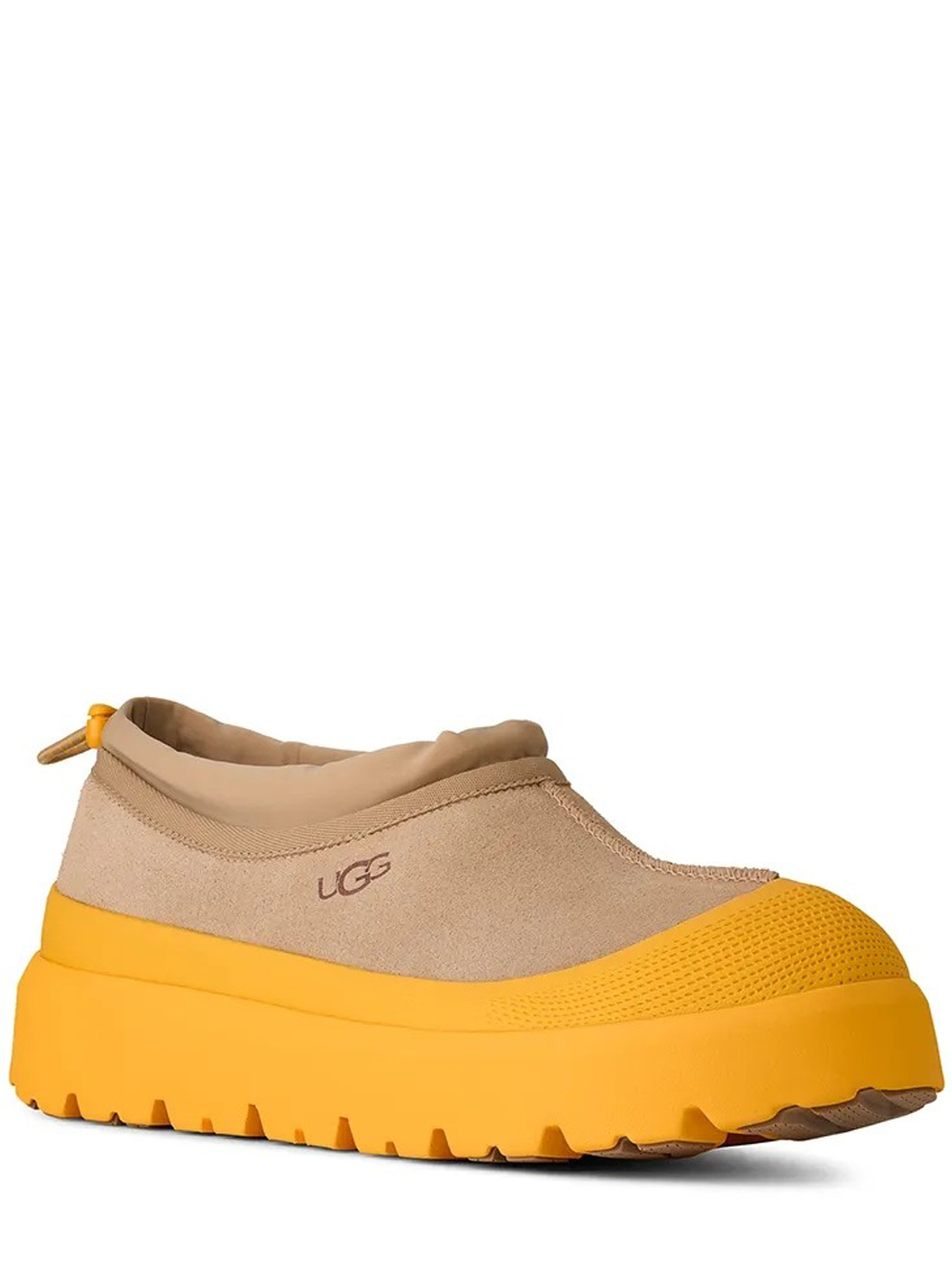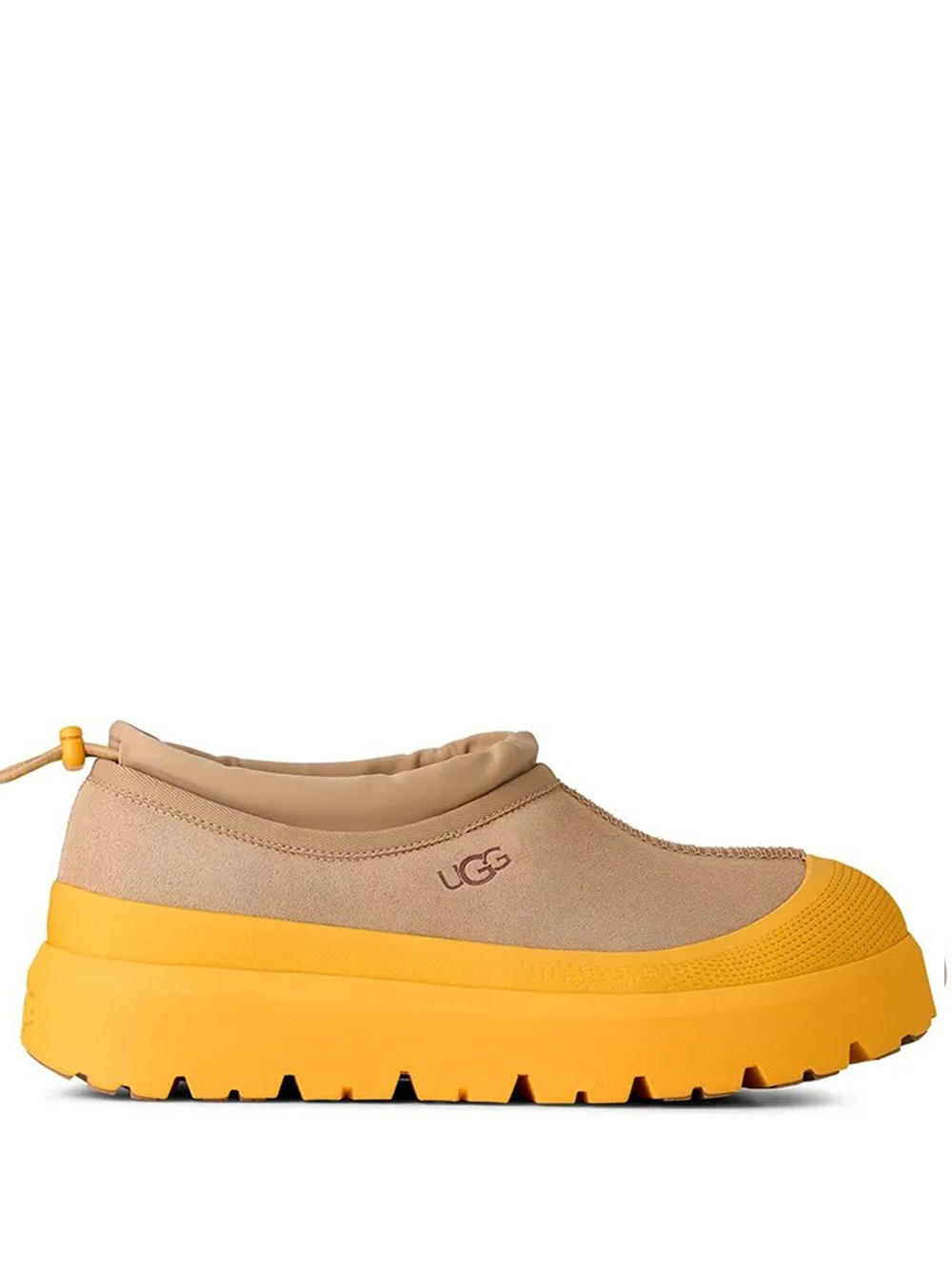 Tasman Weather Hybrid beige and yellowleather sneakers by Ugg with sheepskin inverted uppers, wool insole, elastic drawstring closure, waterproof, embossed logo and SugarSole™ EVA outsole.