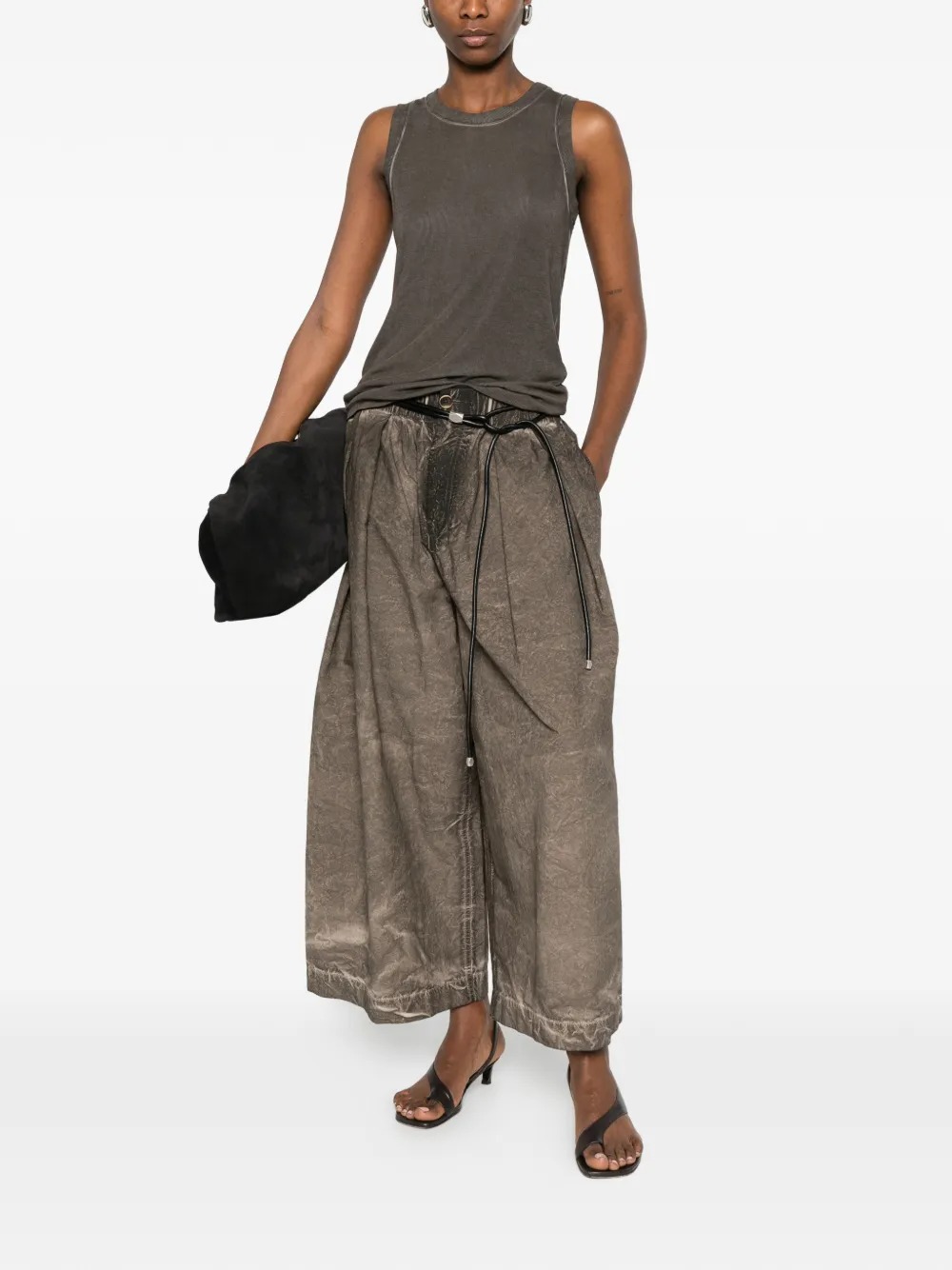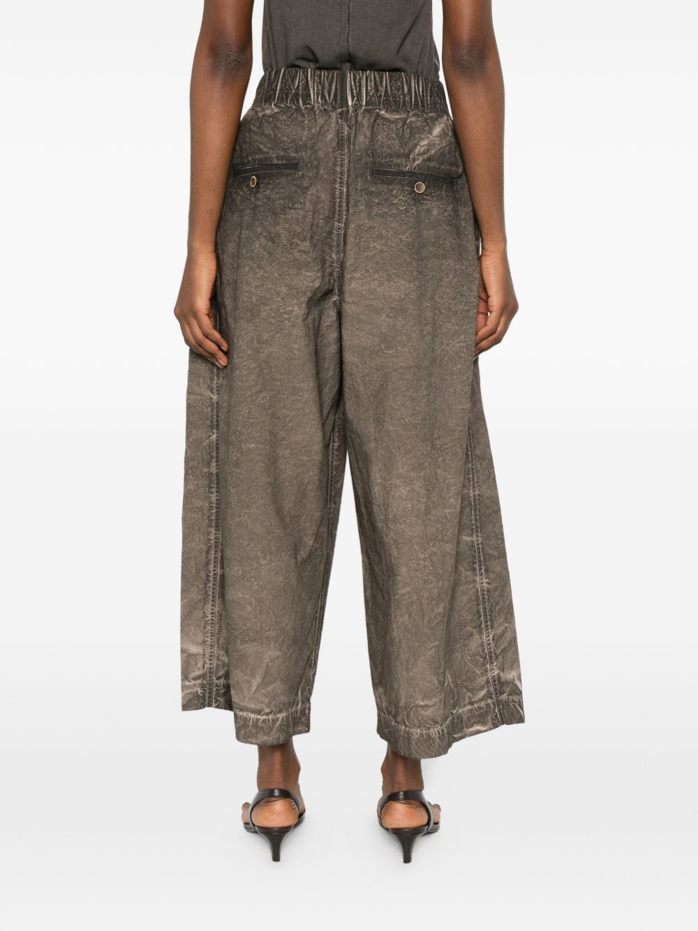 Poetic grigi pants by Huma Wang in cotton with pleats, wide leg, front button closure, and cropped length.