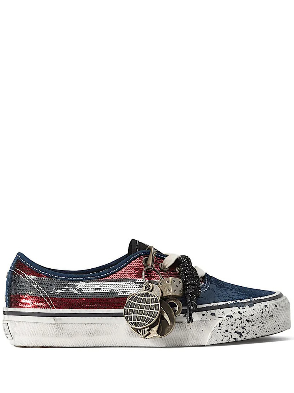 Sneakers rosse e navy Premium Authentic 44 di Vans in cotone con chiusura frontale con lacci, toppe con logo sul lato, stampa con logo sul retro e soletta con marchio, punta a mandorla e suola in gomma.