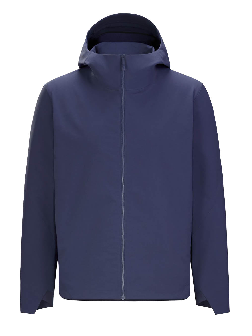 Blue Insogon MX Hoody jacket by Veilance in nylon with front zip closure, hood, adjustable cuffs, and straight hem.