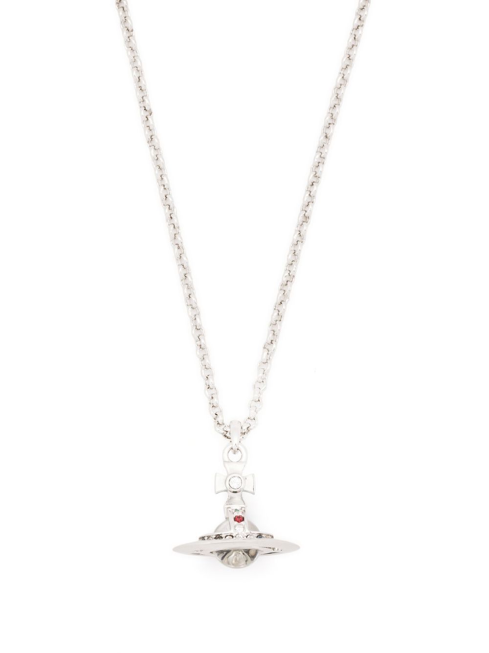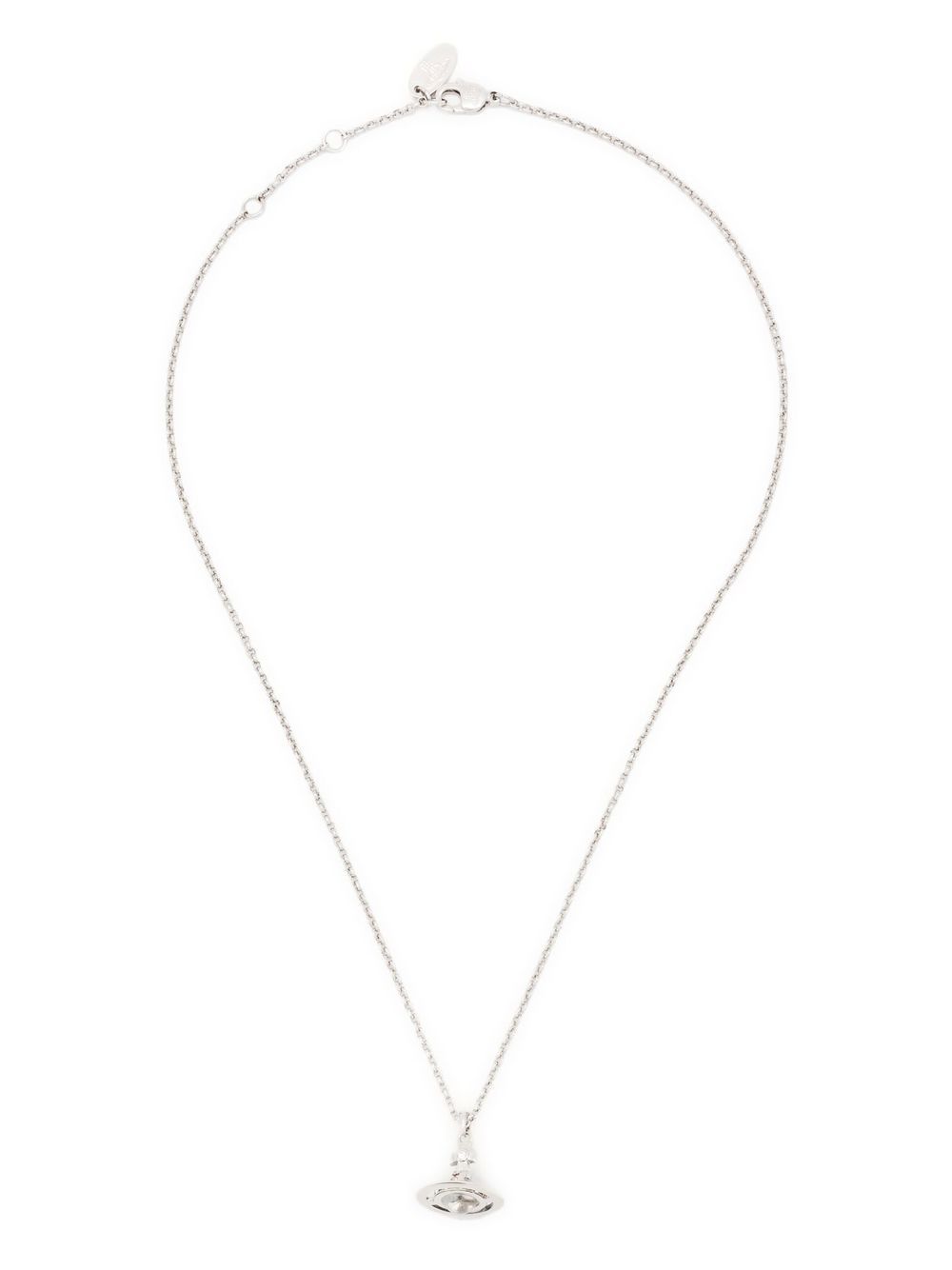 Vivienne Westwood New Petit Orb Pendant platinum-colored necklace in brass with crystal decoration and adjustable back clasp.