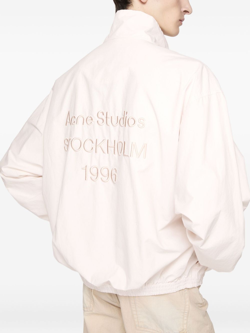 Giacca bianca di Acne Studios in nylon conricamo del logo Acne Studios sul retro, taglio rilassato e lunghezza sotto la vita.