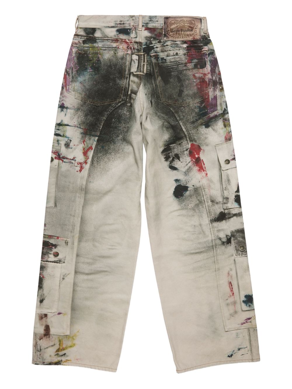 Jeans bianco multicolor Baggy Fit 1981 di Acne Studios in cotone con vita con passanti, chiusura frontale con bottoni, design 5 tasche, effetto macchiato, vestibilità ampia e orlo dritto.