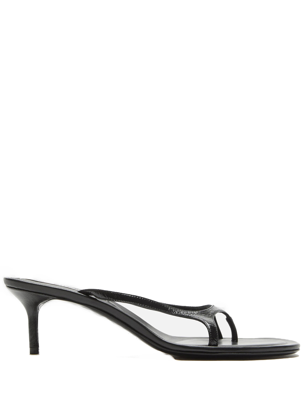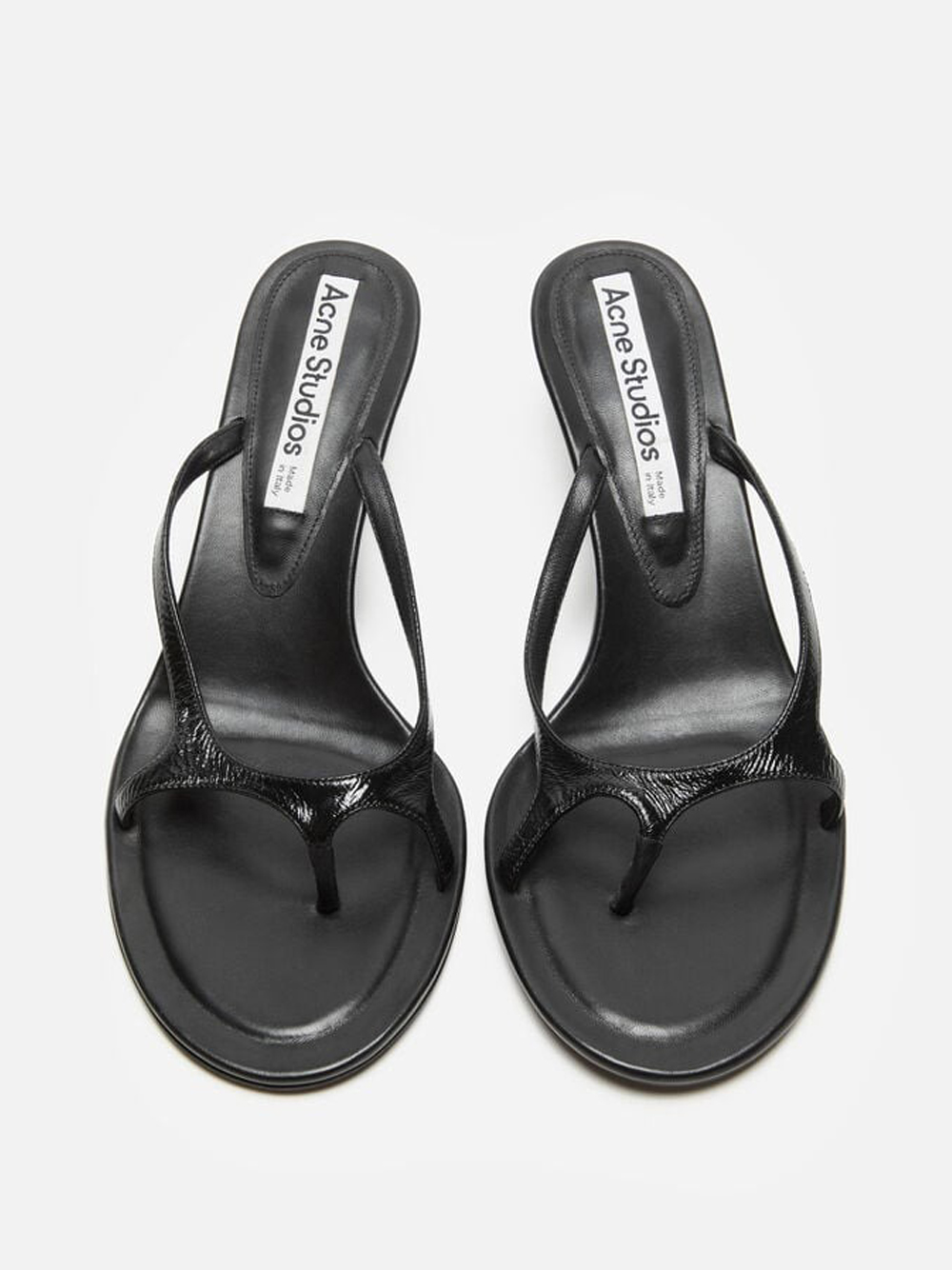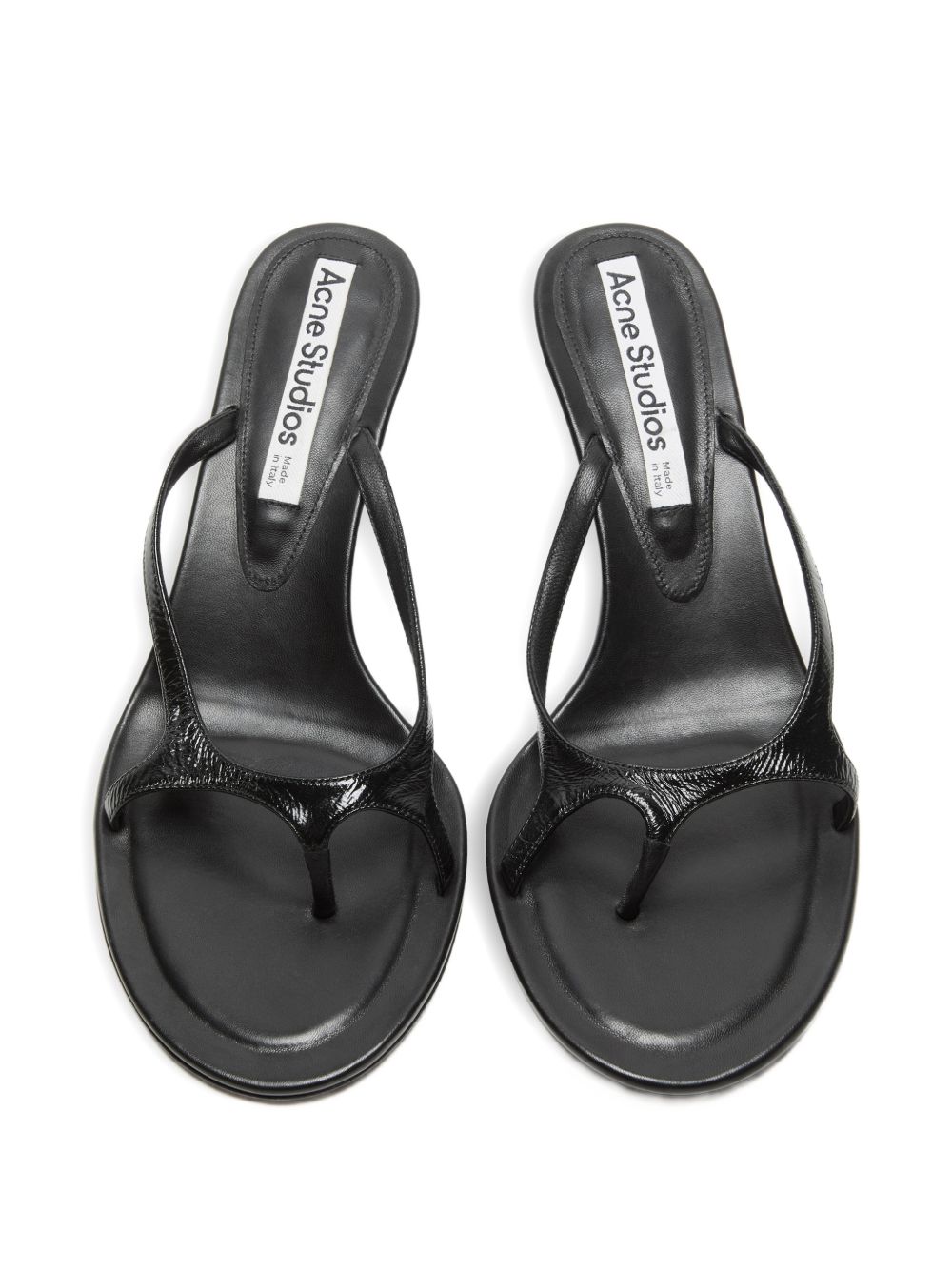 Sandali con tacco neri Leather Kittens Heels di Acne Studios in pelle con punta tonda, soletta con logo, altezza tacco 60mm.