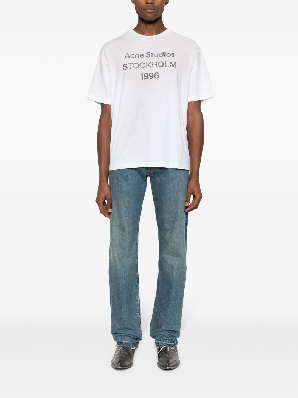 T-shirt logo bianca sbiadito di Acne Studios in cotone con girocollo, stampa frontale e finitura vintage.