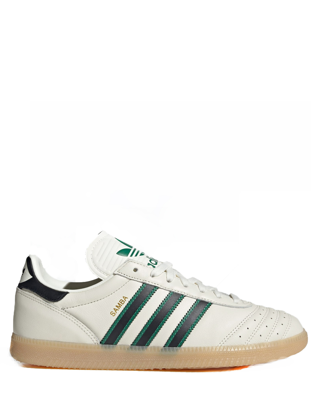 Sneakers bianca Samba JP di Adidas in pelle con punta tonda, chiusura con lacci, linguetta con logo, pannelli con cuciture in rilievo e suola in gomma.