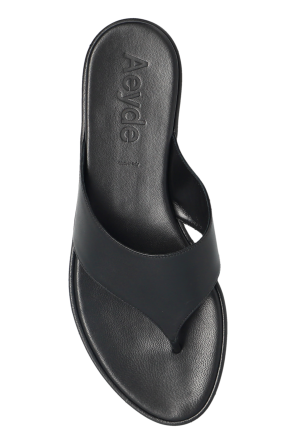 Décolleté slingback moka Annora di Aeyde in pelle con punta, cintutino e suola piatta.