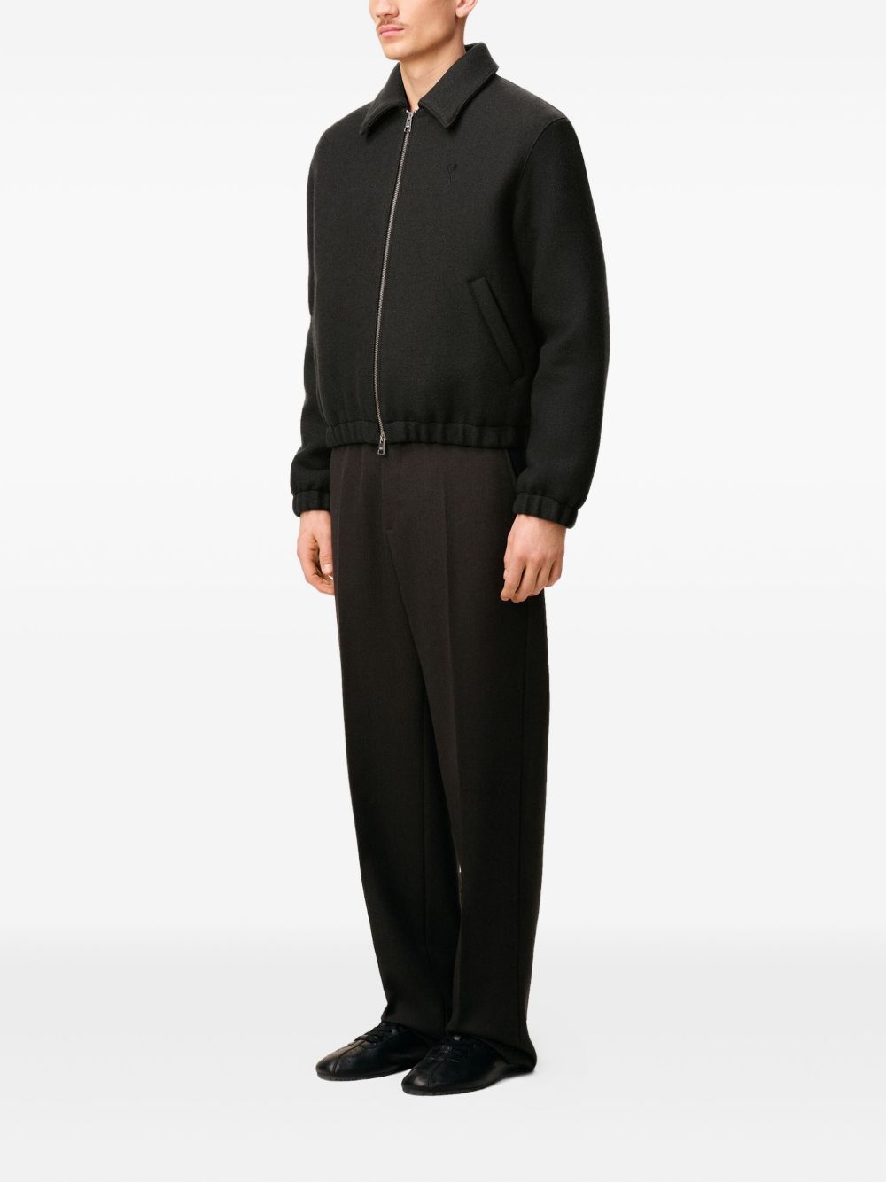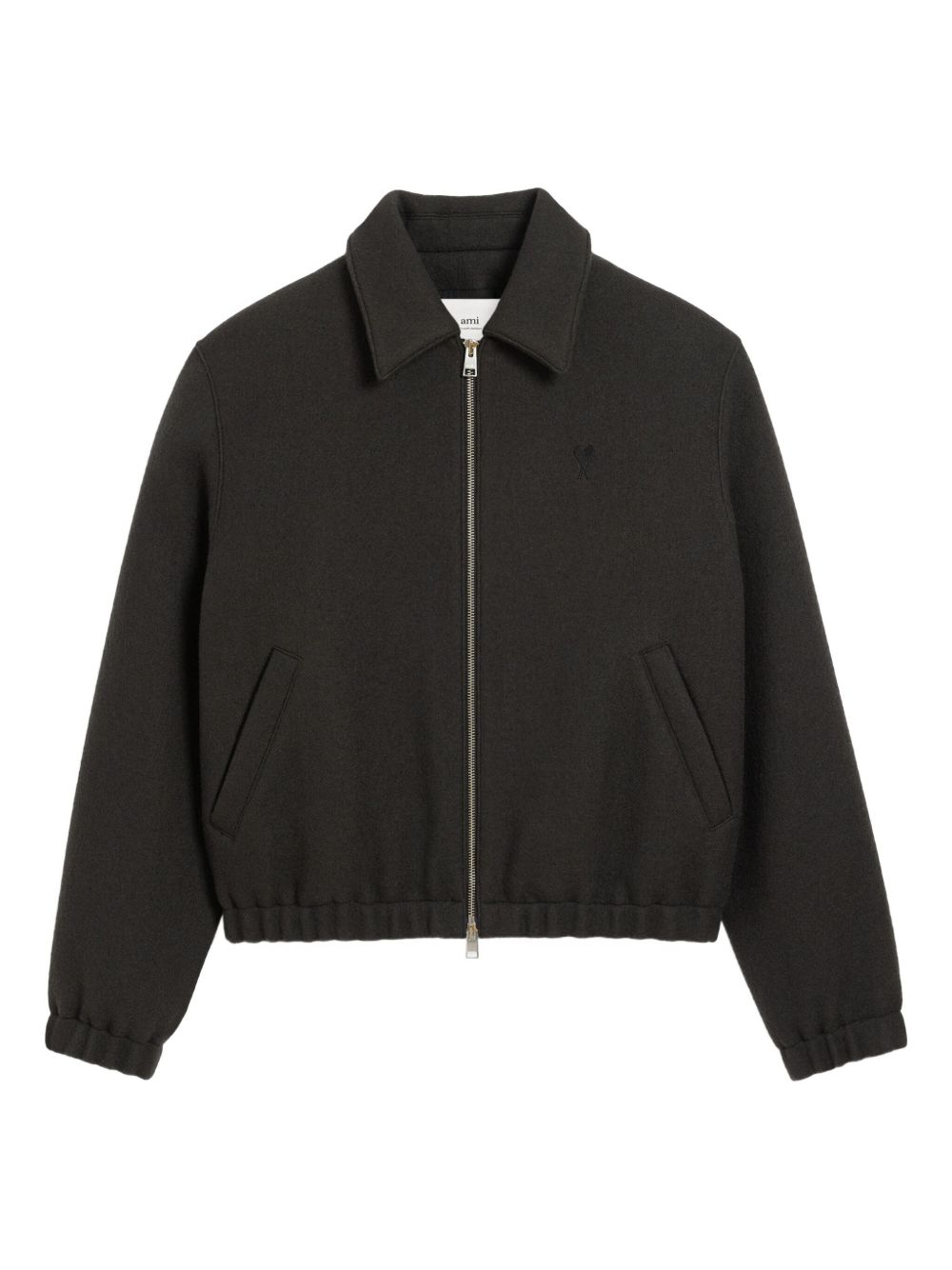 Ciacca antracite ADC Zipped di Ami Paris in lana con chiusura con zip a doppio cursore, due tasche a filetto laterali, orli elasticizzati, vita elasticizzata e logo sul petto.