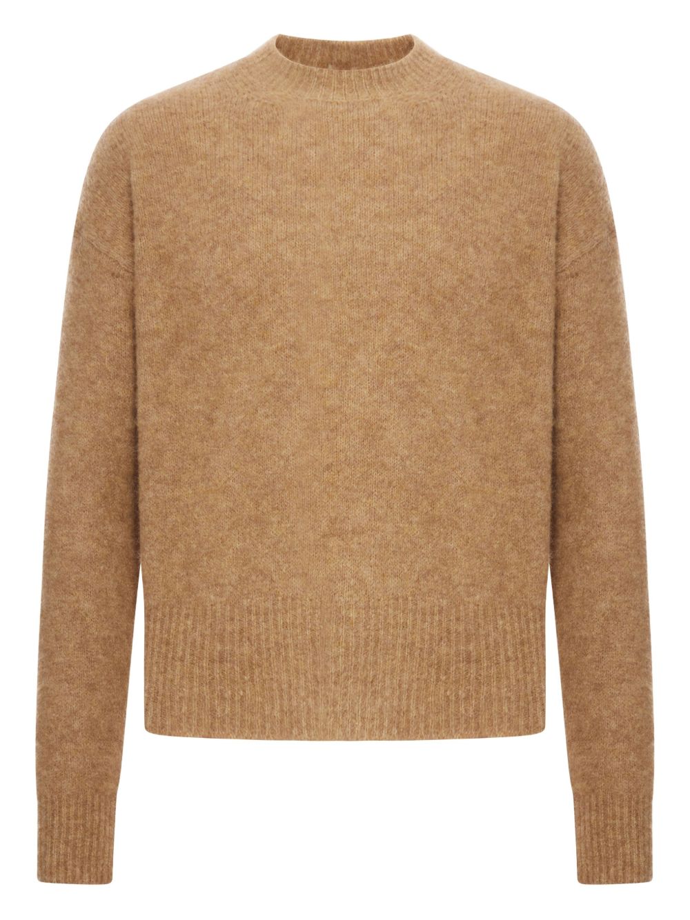 Maglione caramello di Ami Paris in alpaca con girocollo, manica lunga, orlo e polsini a coste.