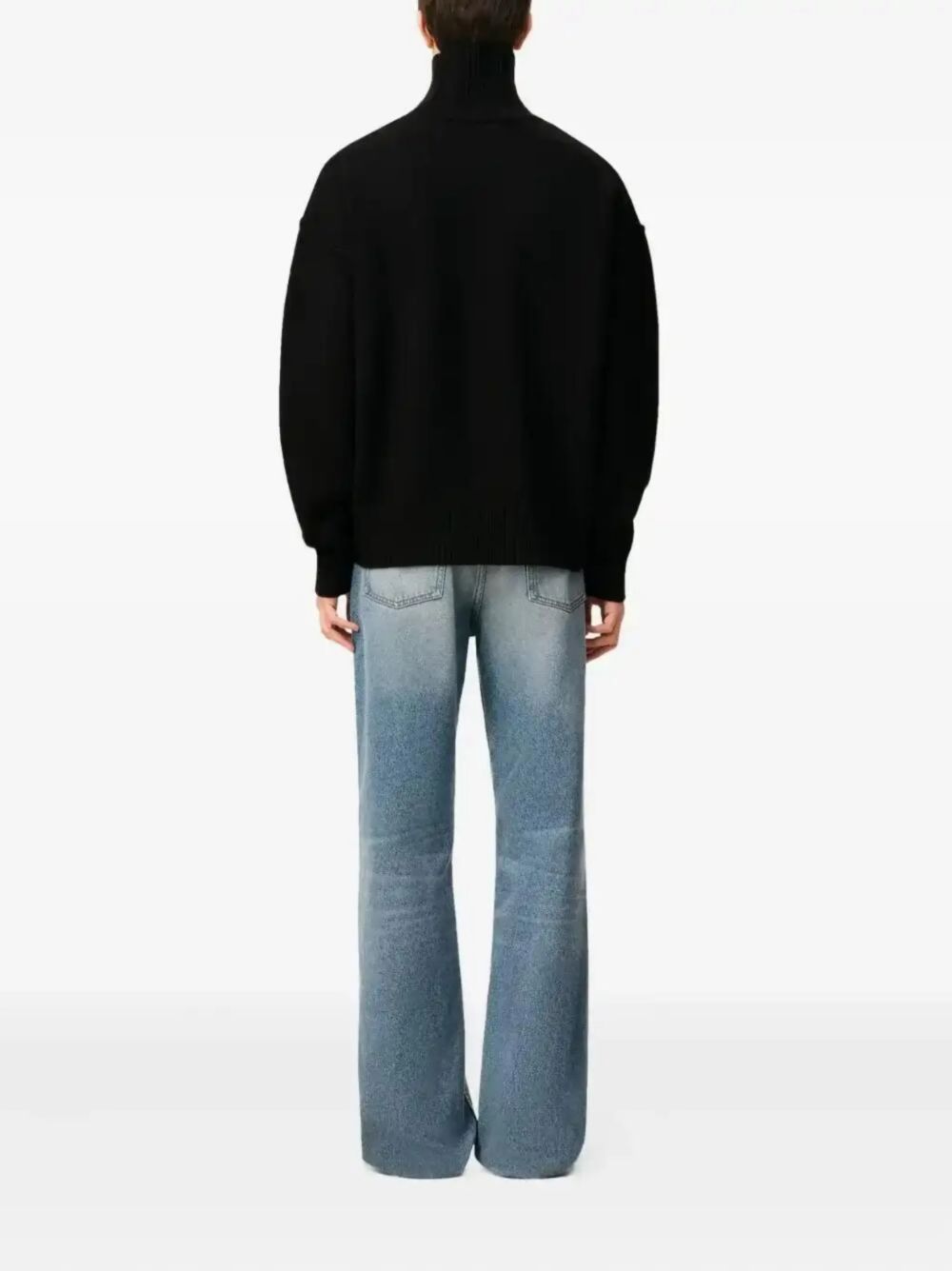 Maglione nero ADC di Ami Paris in lana con collo alto, logo rosso a contrasto e orlo dritto.