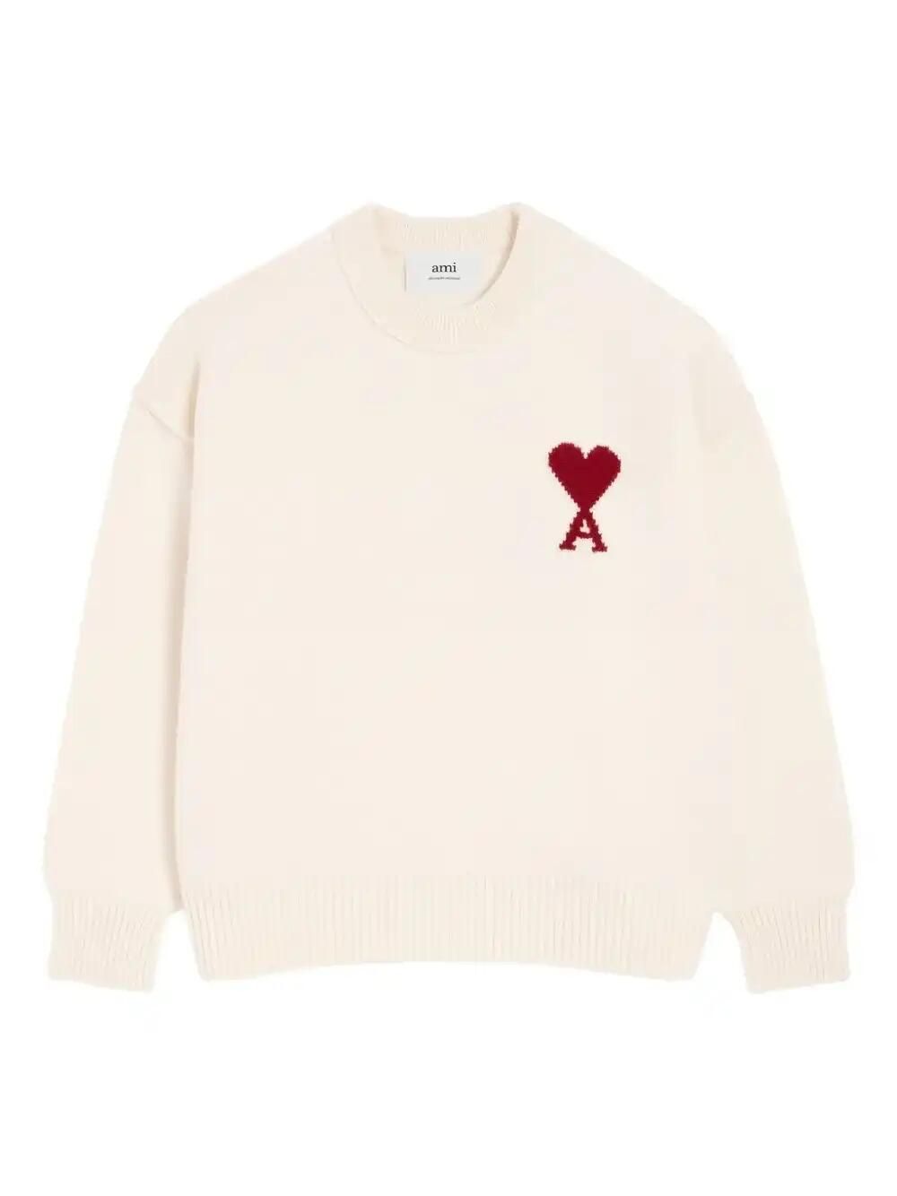 Maglione off-white ADC di Ami Paris in lana con girocollo, logo rosso a contrasto e orlo dritto.