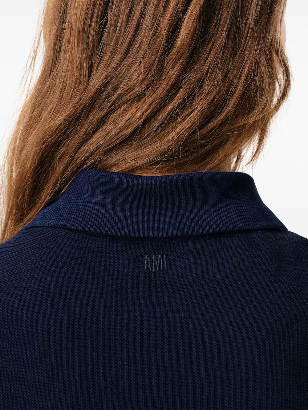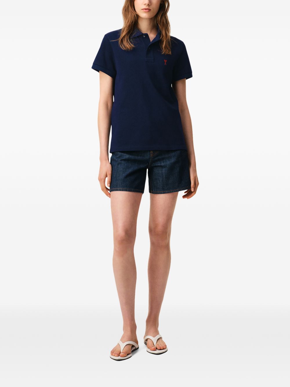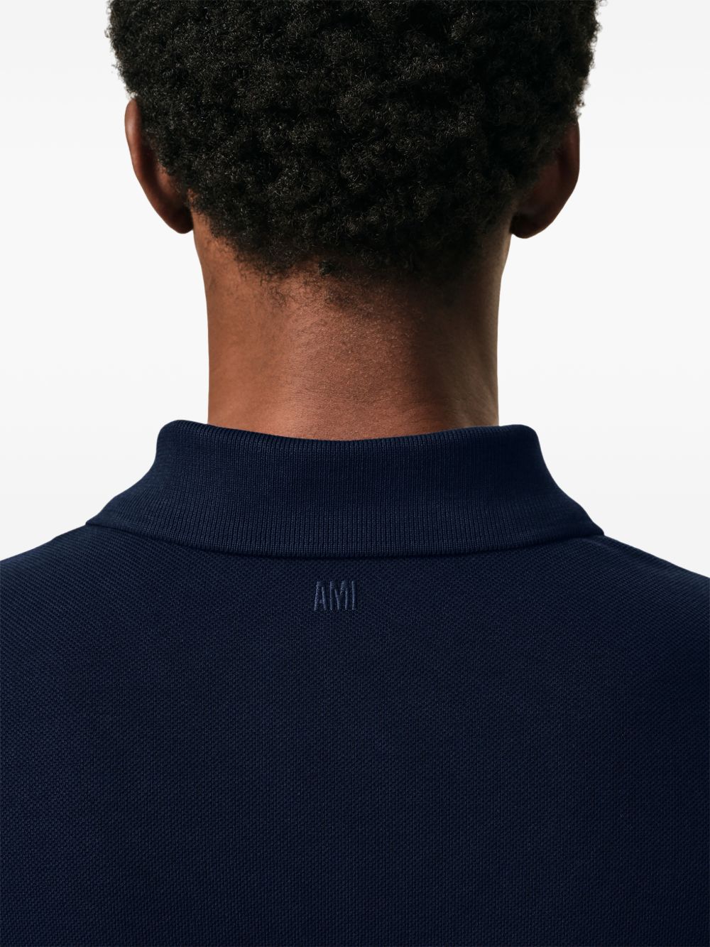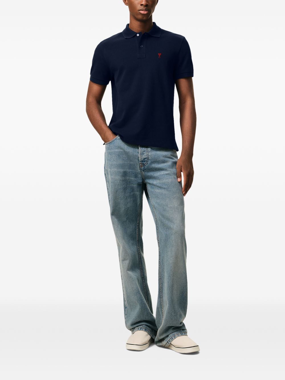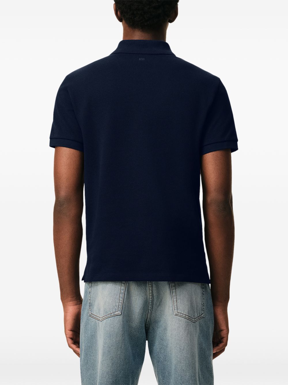 Polo blu ADC di Ami Pris in cotone con colletto classico, chiusura classica con bottoni, logo ricamato a contrasto sul petto e orlo dritto.