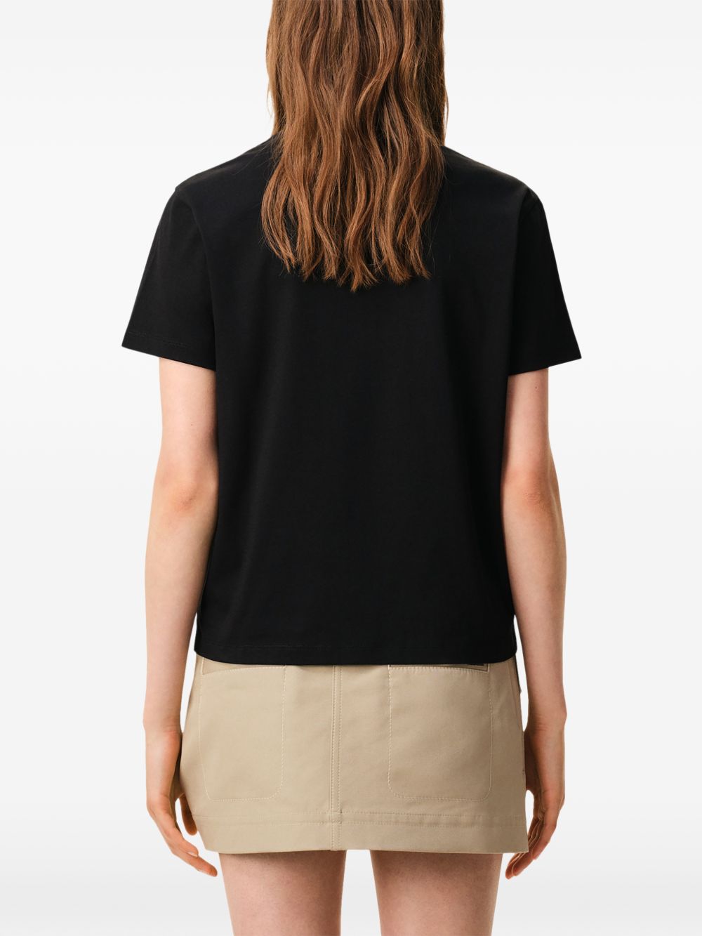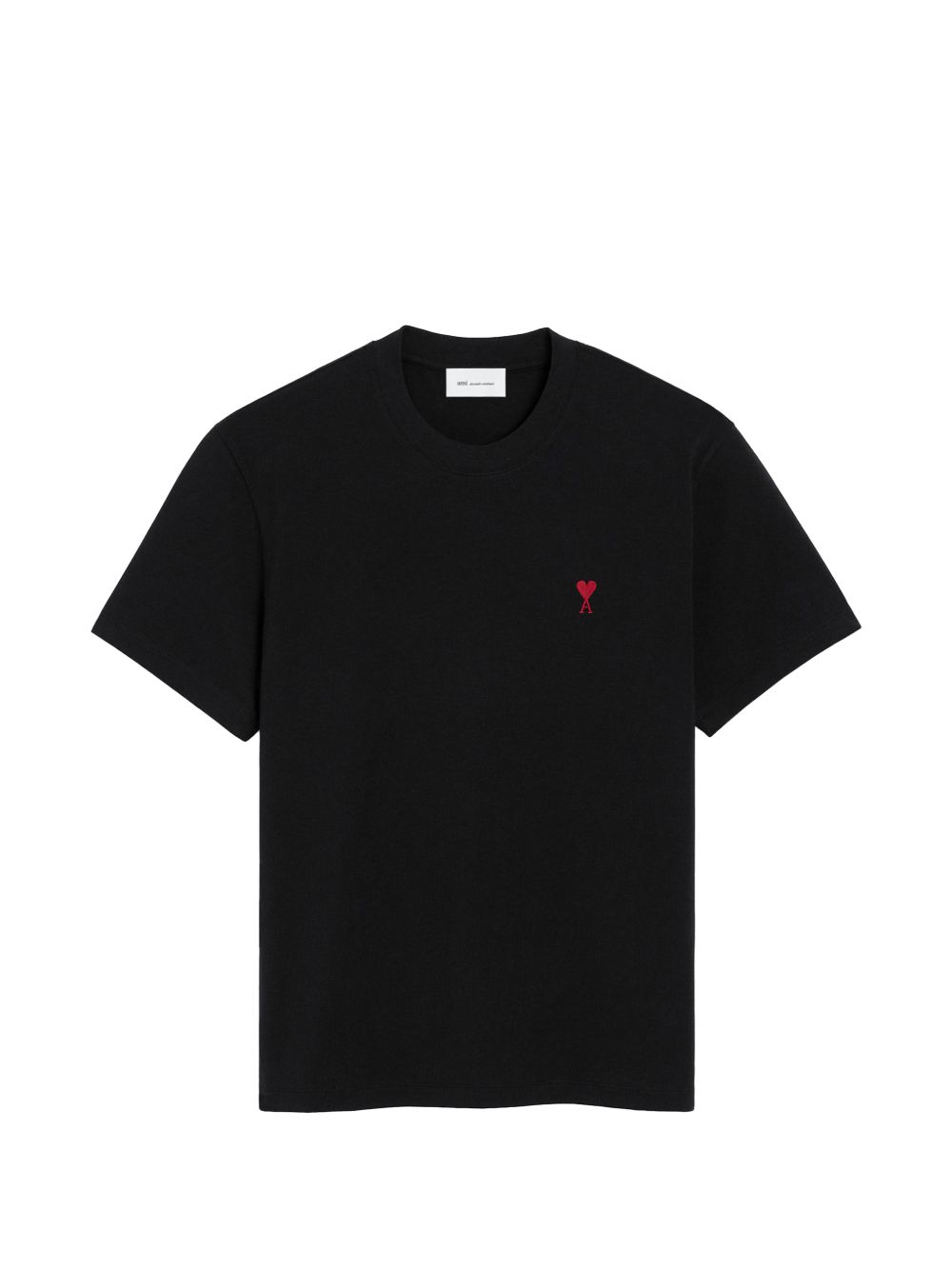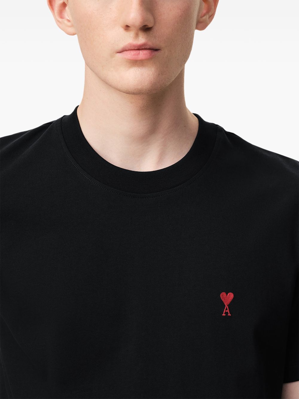 T-shirt nera Ami de Coeur di Ami Paris in cotone con girocollo, logo a contrasto sul petto e orlo dritto.