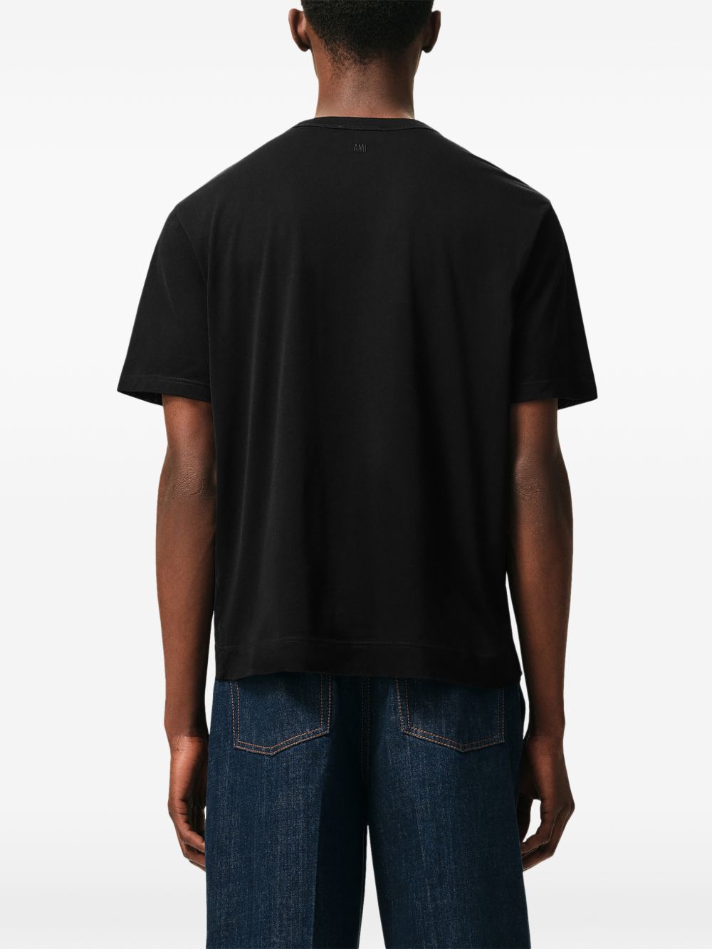T-shirt nera Solid Mercerized di Ami Paris in cotone con girocollo e orlo dritto.