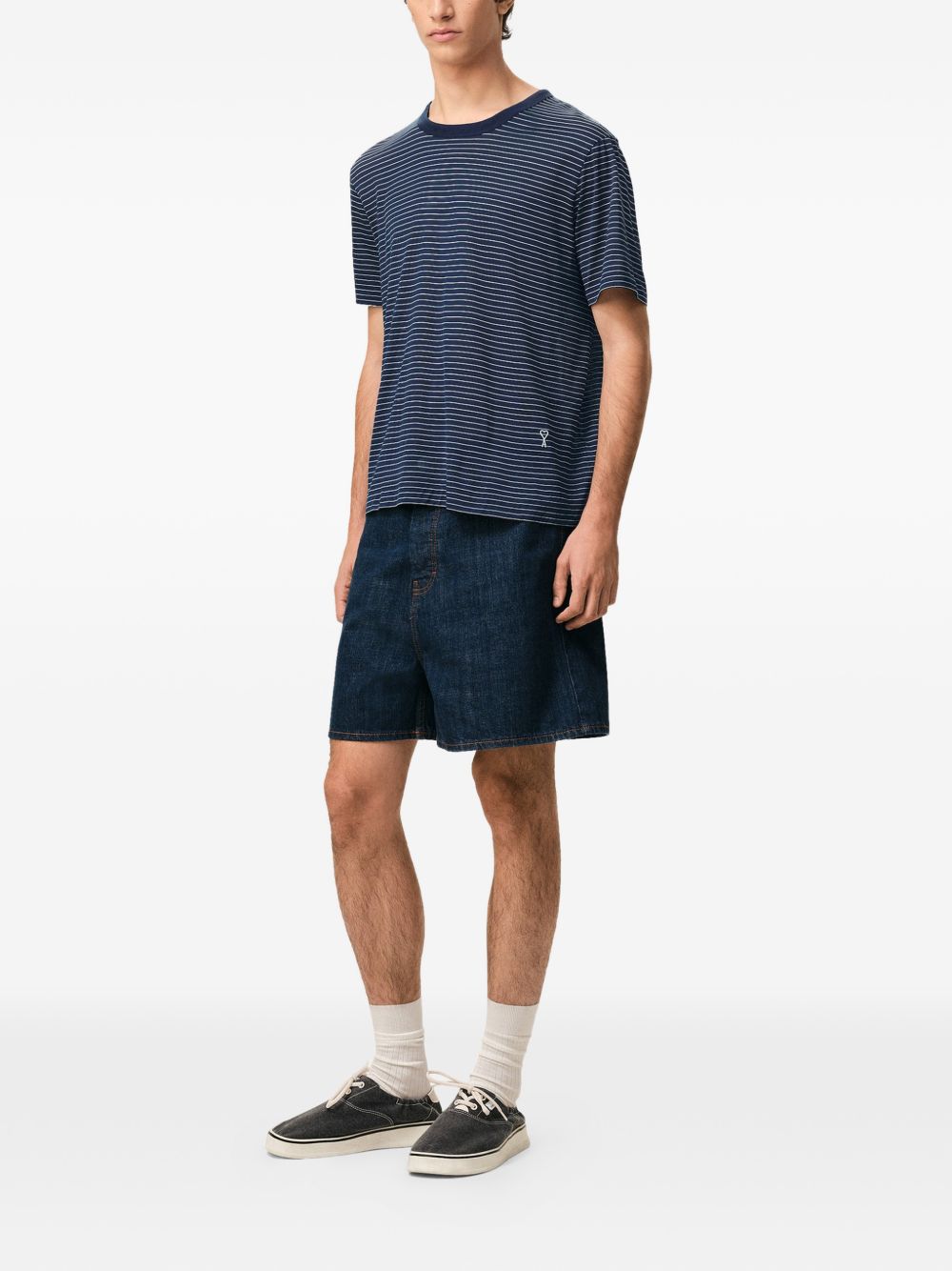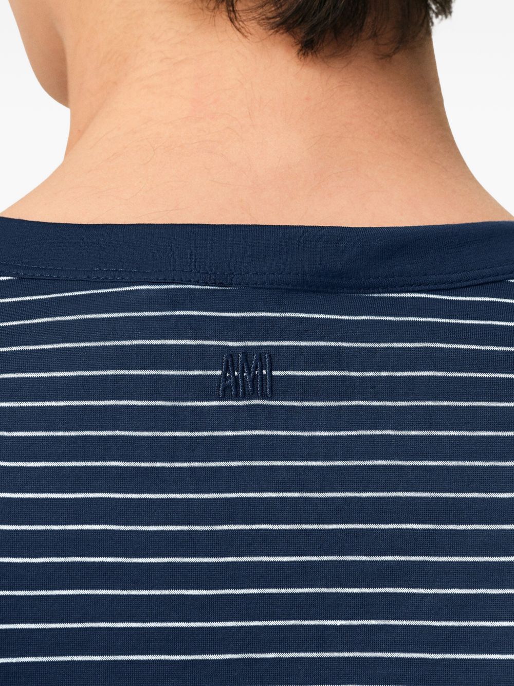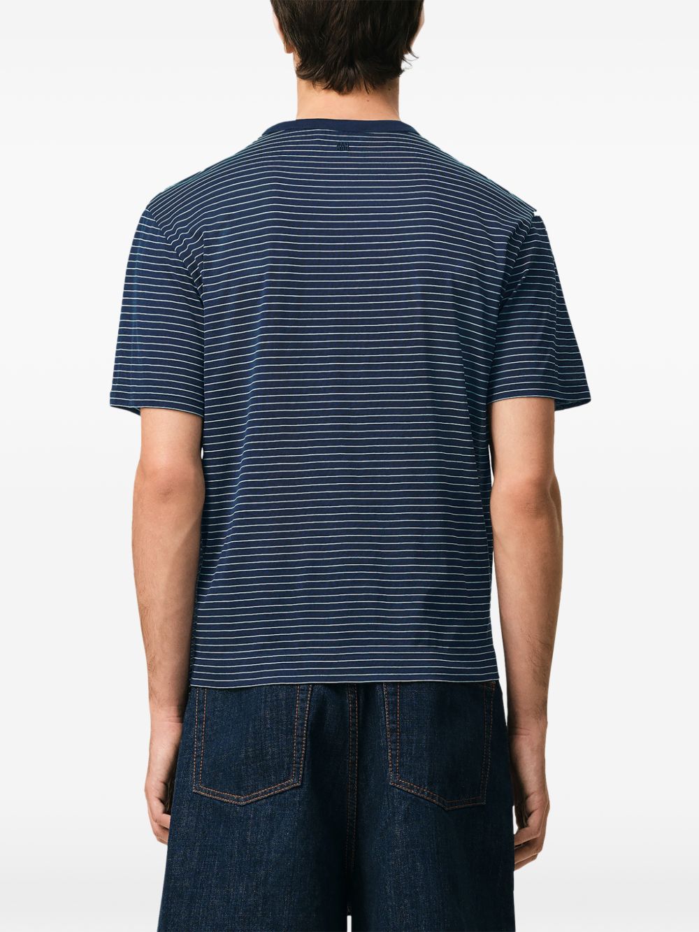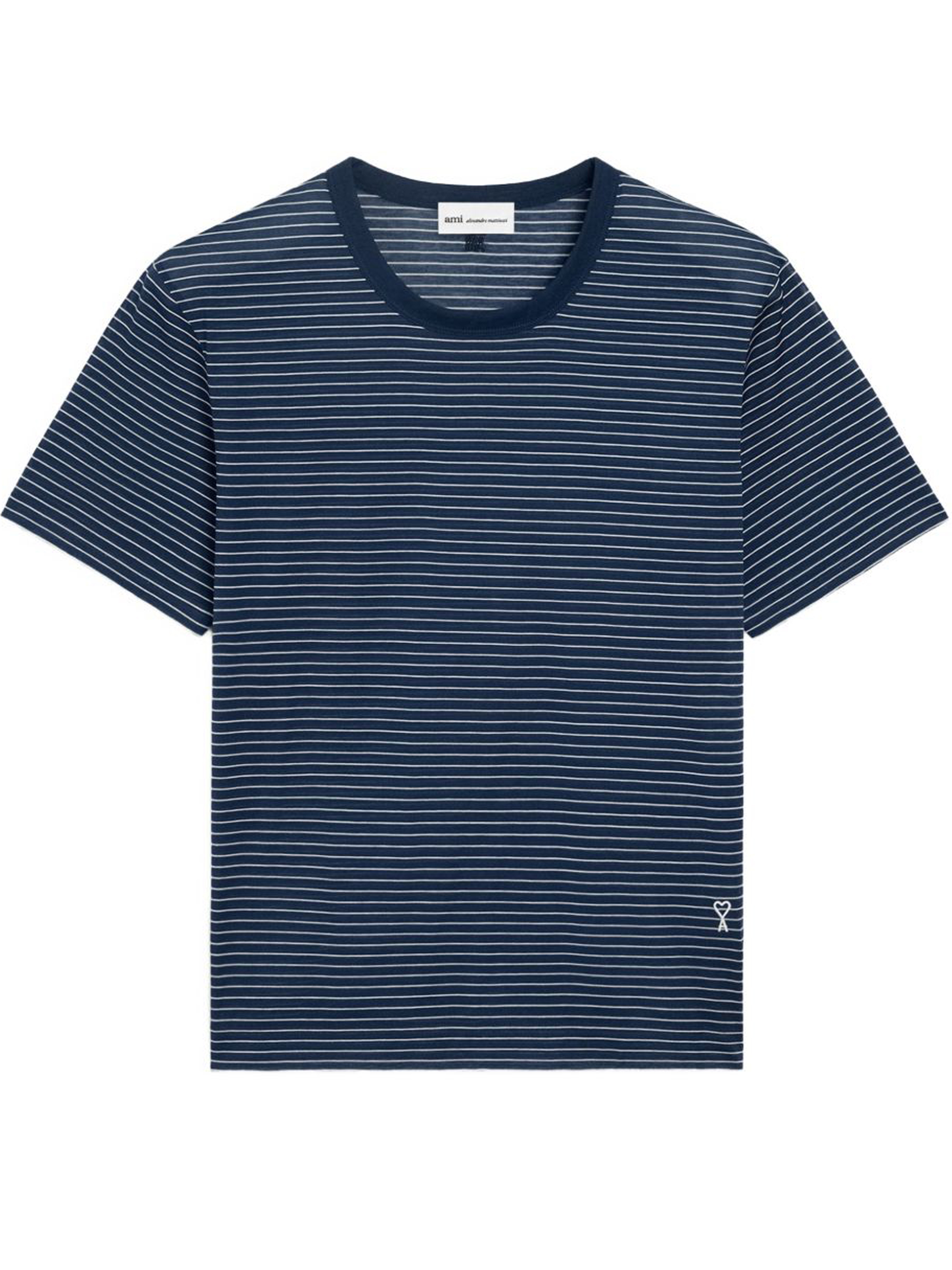 T-shirt inchiostro e bianca Stiped Mercerized di Ami Paris in cotone con girocollo e orlo dritto.