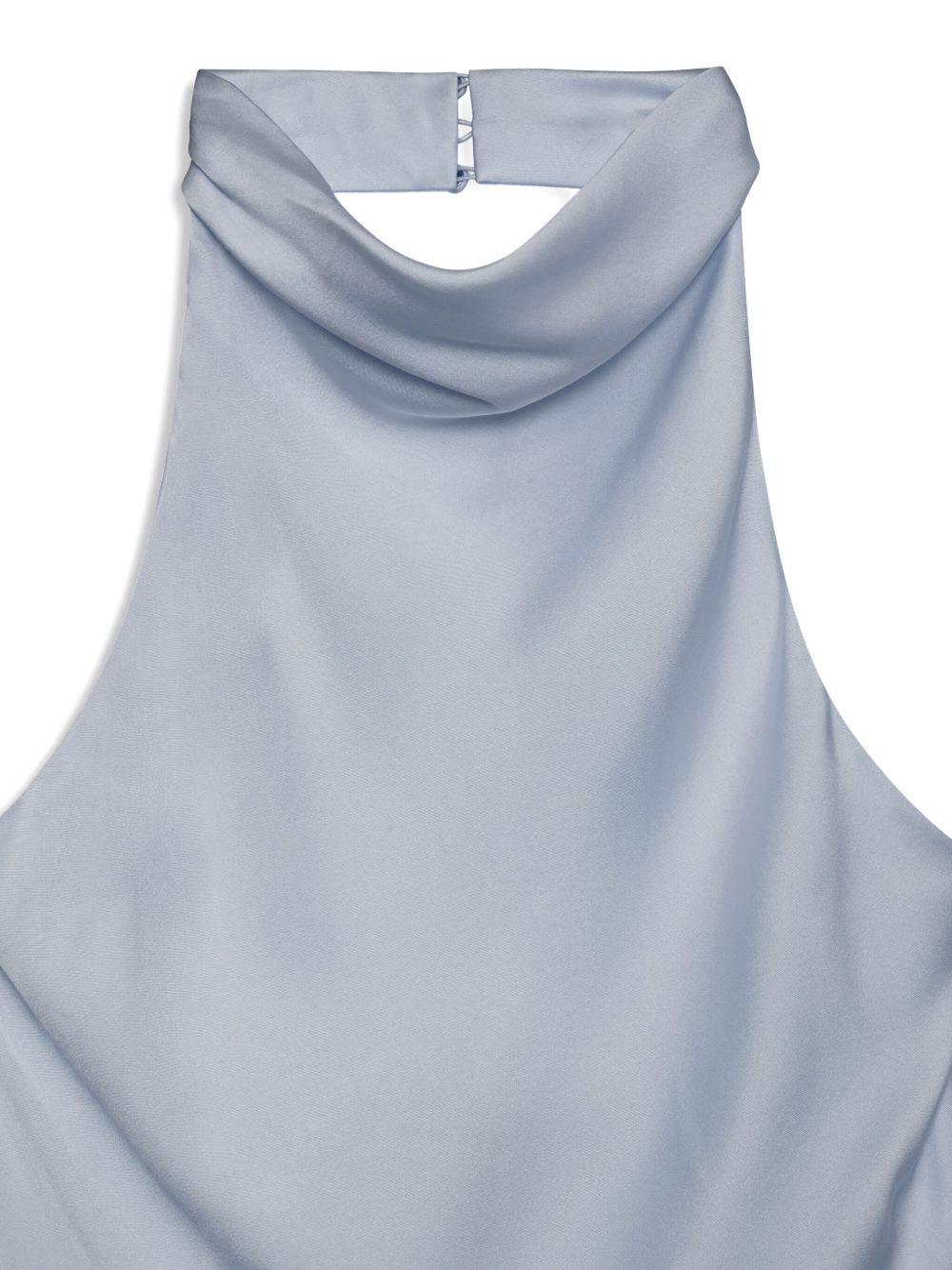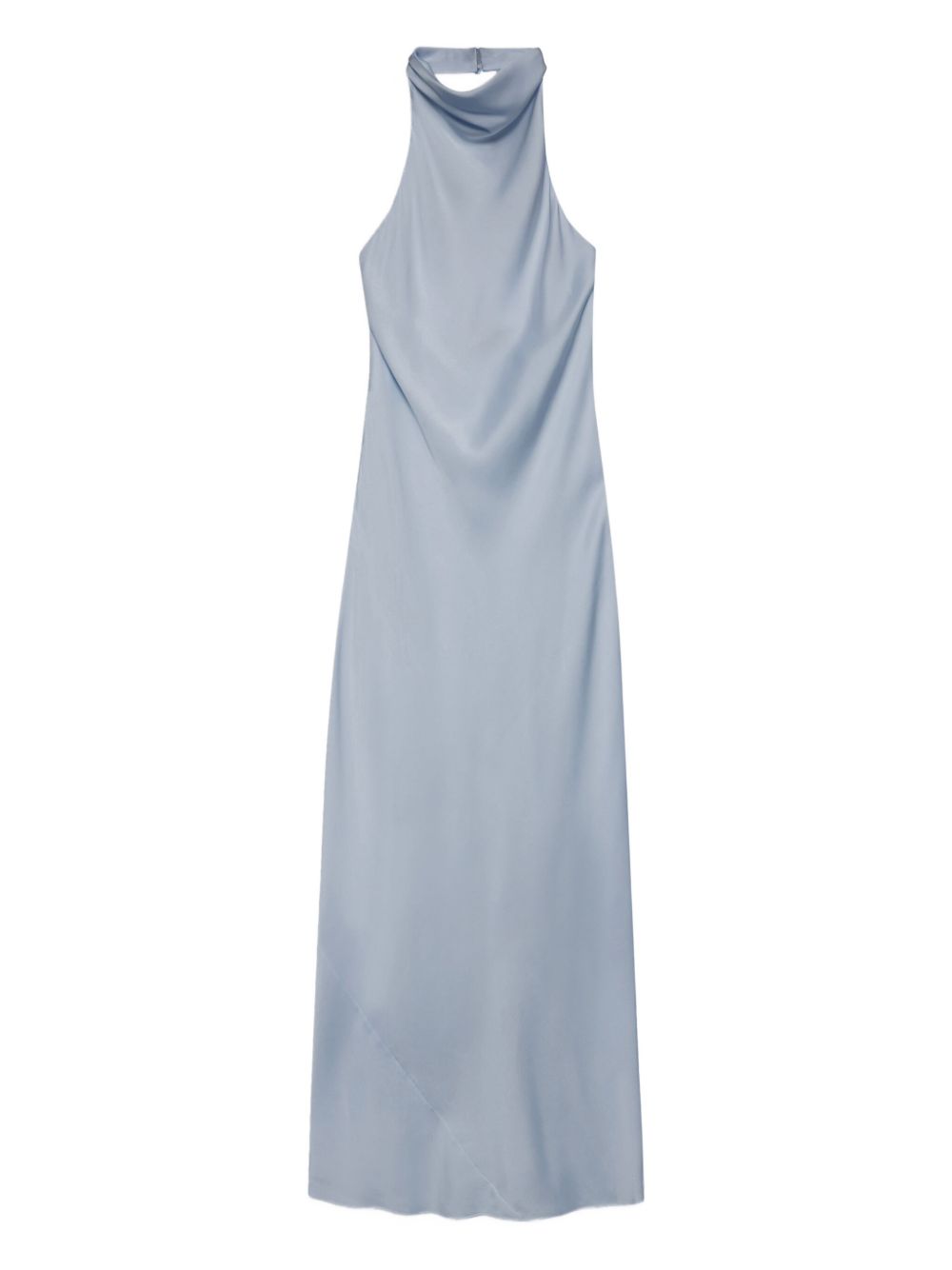 Abito lungo blu pastello Eliana Dress di Anine Bing in seta con scollo all'americana, chiusura posteriore e schiena scoperta.
