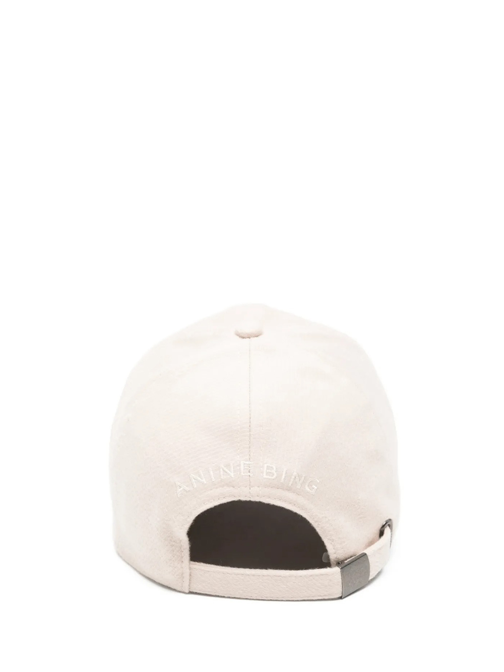 Cappello beige Jeremy di Anine Bing in viscosa con logo bianco ricamato, visiera curva e chiusura posteriore regolabile.