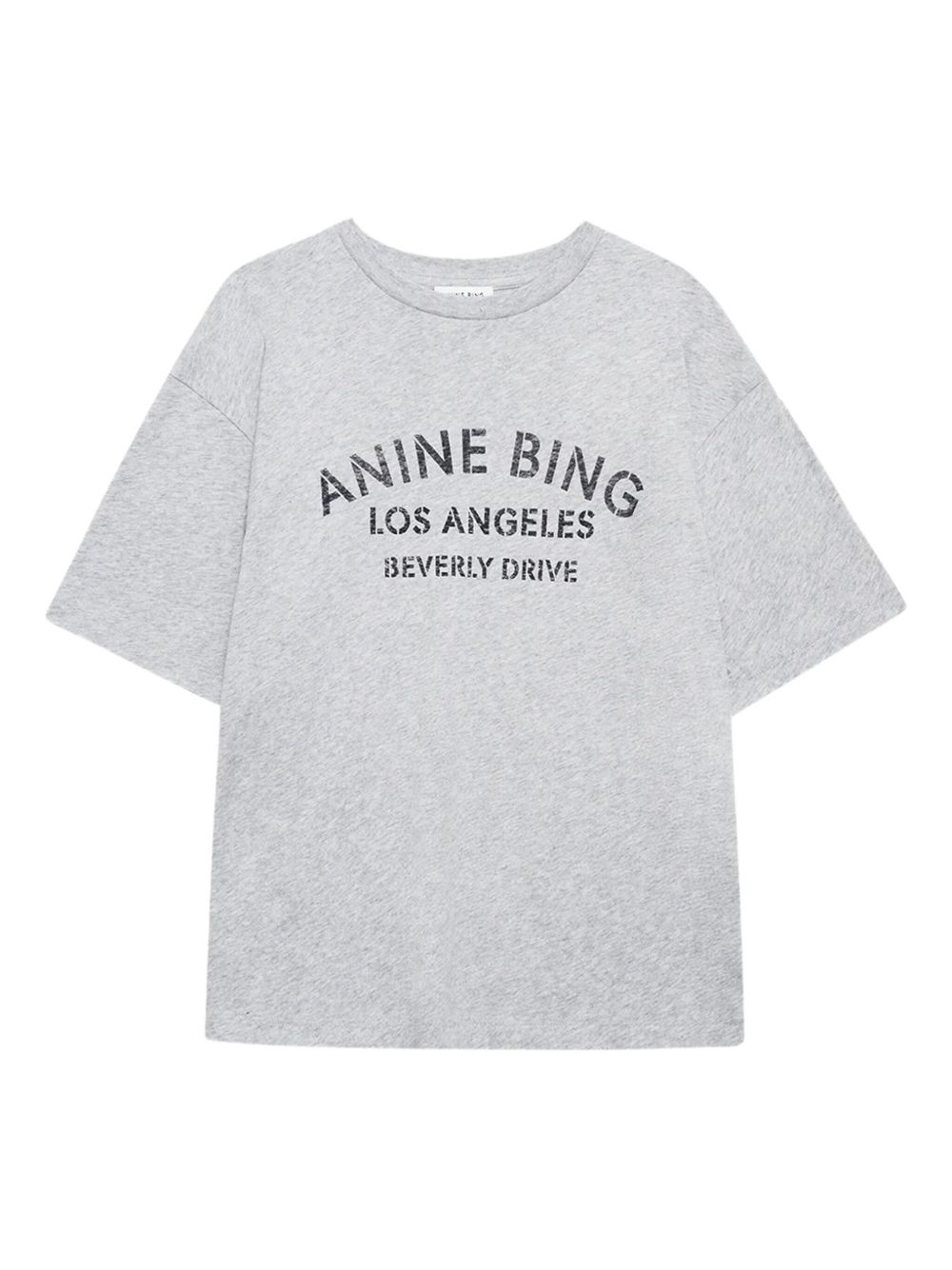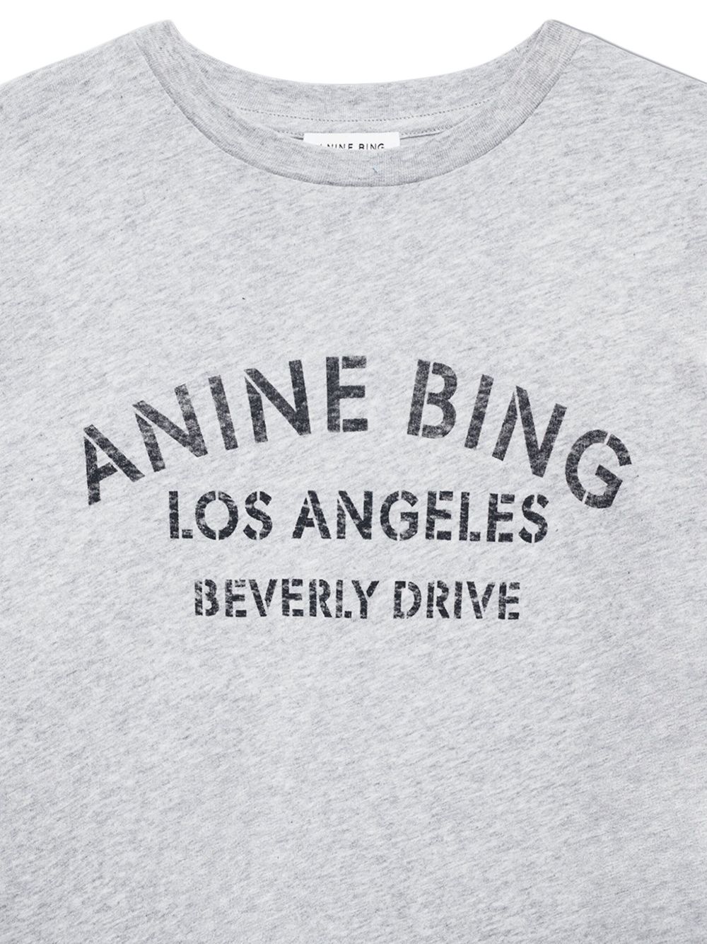 T-shirt grigia Cohen Los Angeles Stancil di Anine Bing in cotone con girocollo, manica corta stampa frontale e orlo dritto.