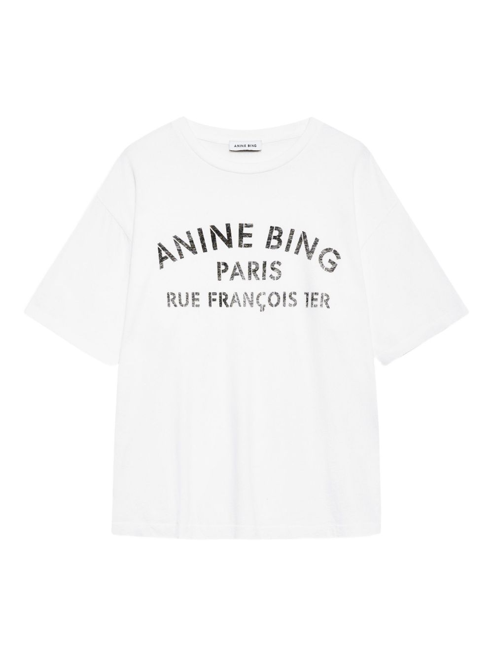 T-shirt ivory Cohen Paris Stencil di Anine Bing in cotone con girocollo, manica corta stampa frontale e orlo dritto.