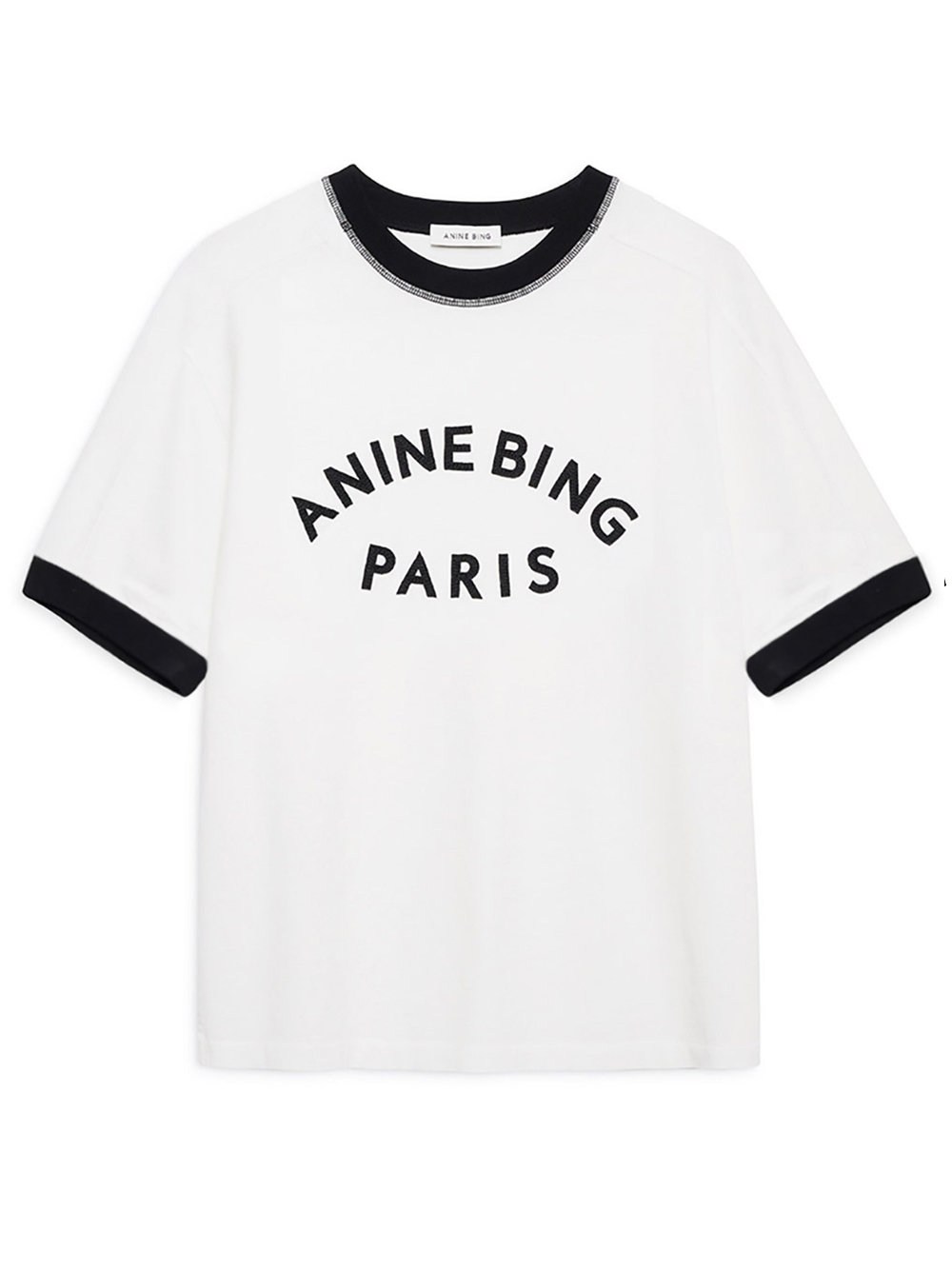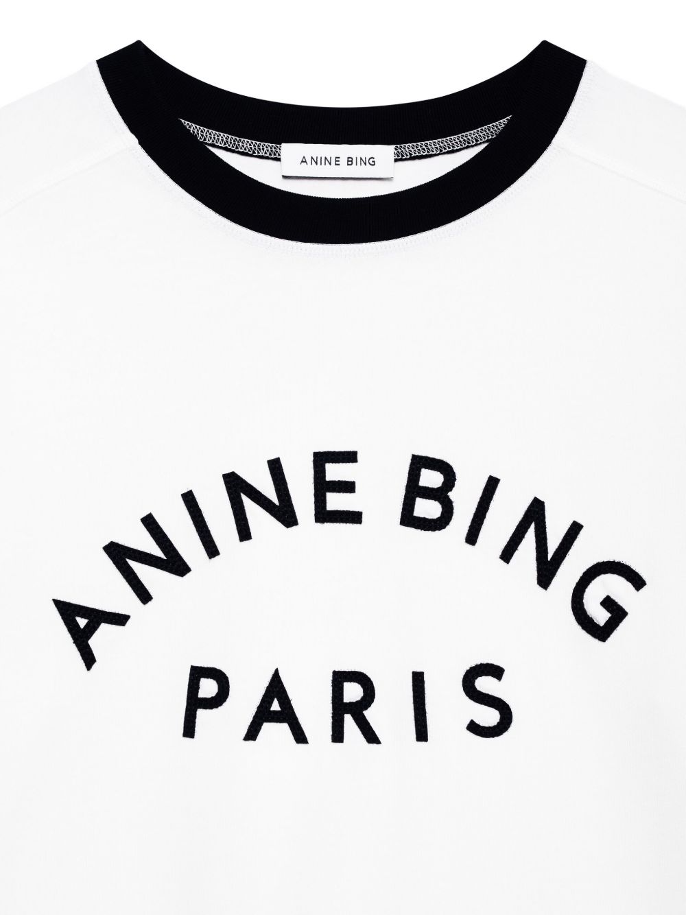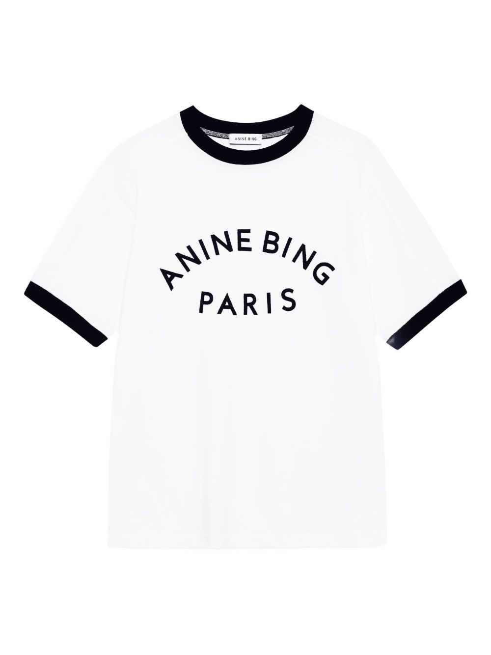 T-shirt ivory Jaylin Paris di Anine Bing in cotone con girocollo, manica corta stampa frontale e orlo dritto.