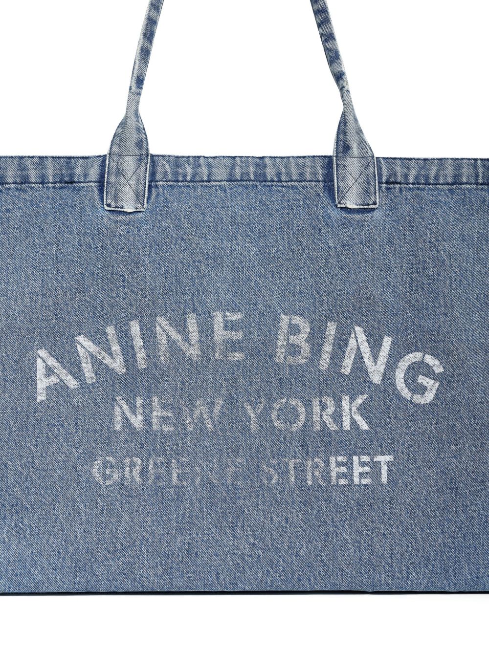 Tote bag blu Leo Denim di Anine bing in cotone con due manici e stampa frontale